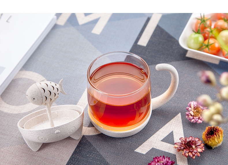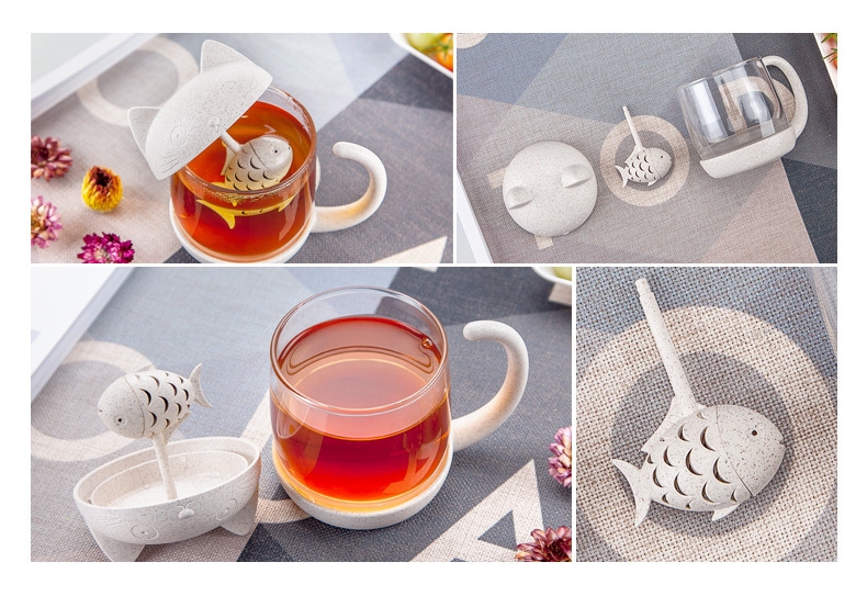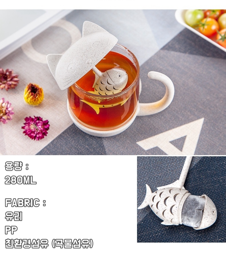 고양이 뚜껑있는 머그컵 차 우리는 컵 물고기 찻잎필터 컵 일체형찻잔 티머그 집들이선물용