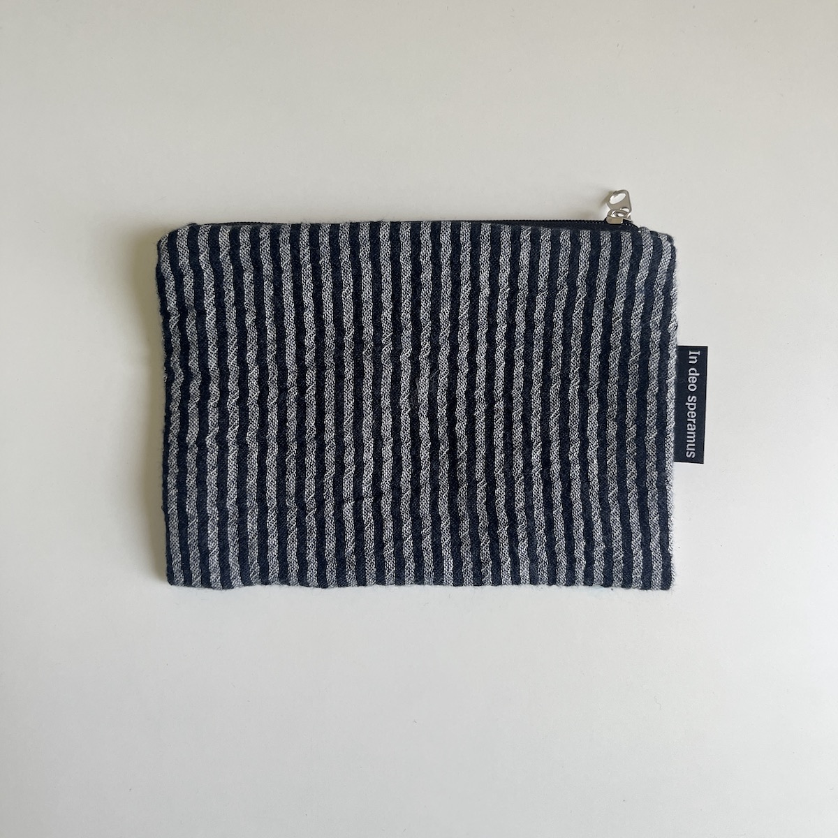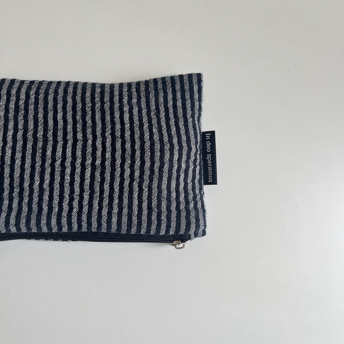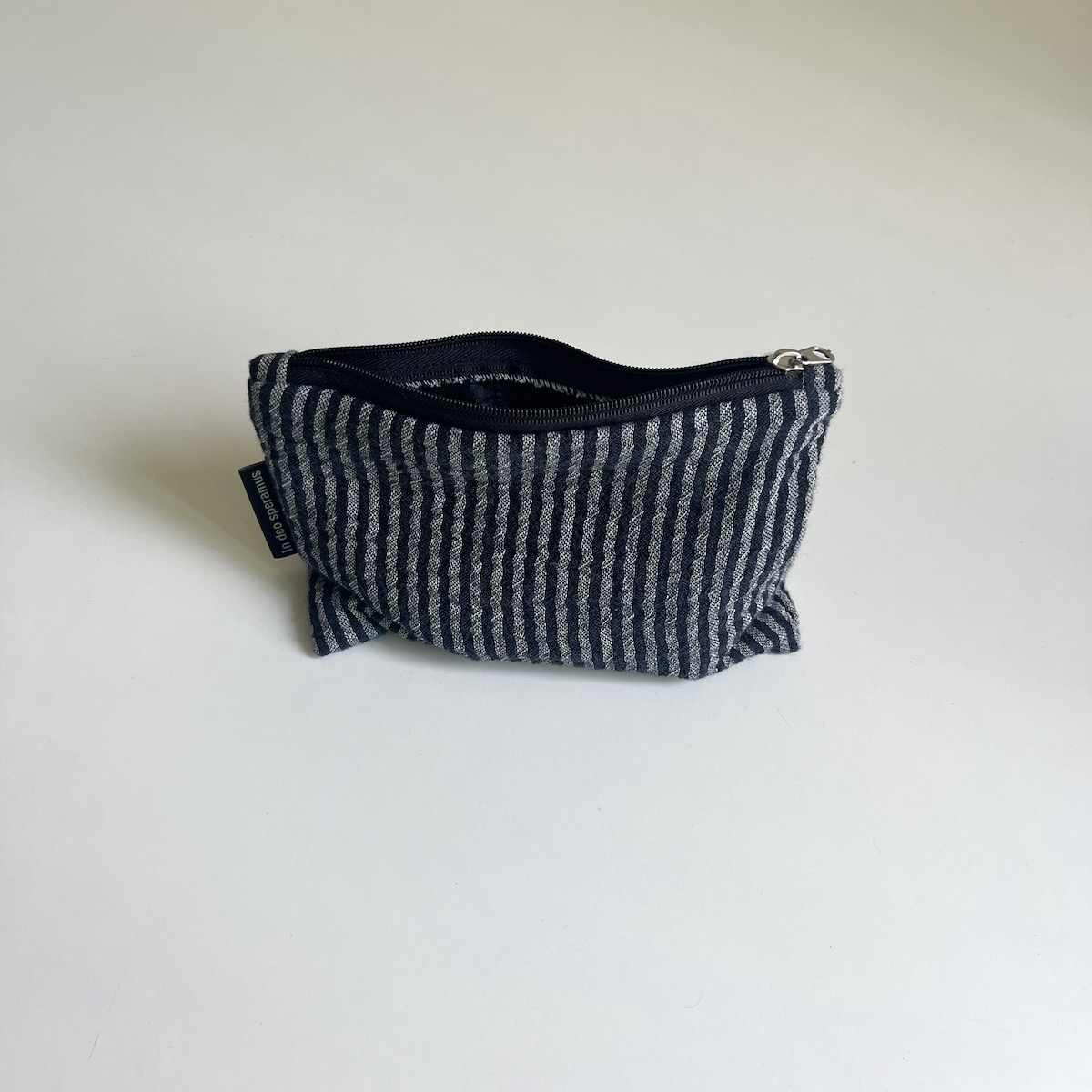 상품 설명 빈티지한 줄무늬가 매력적인 파우치입니다. 팩트1개 립3-4개 소지 가능한 사이즈입니다. 발수 기능이 있는 안감 원단을 덧대어 제작하여 보다 위생적으로 사용할 수 있습니다. 선물용으로도 추천드립니다.