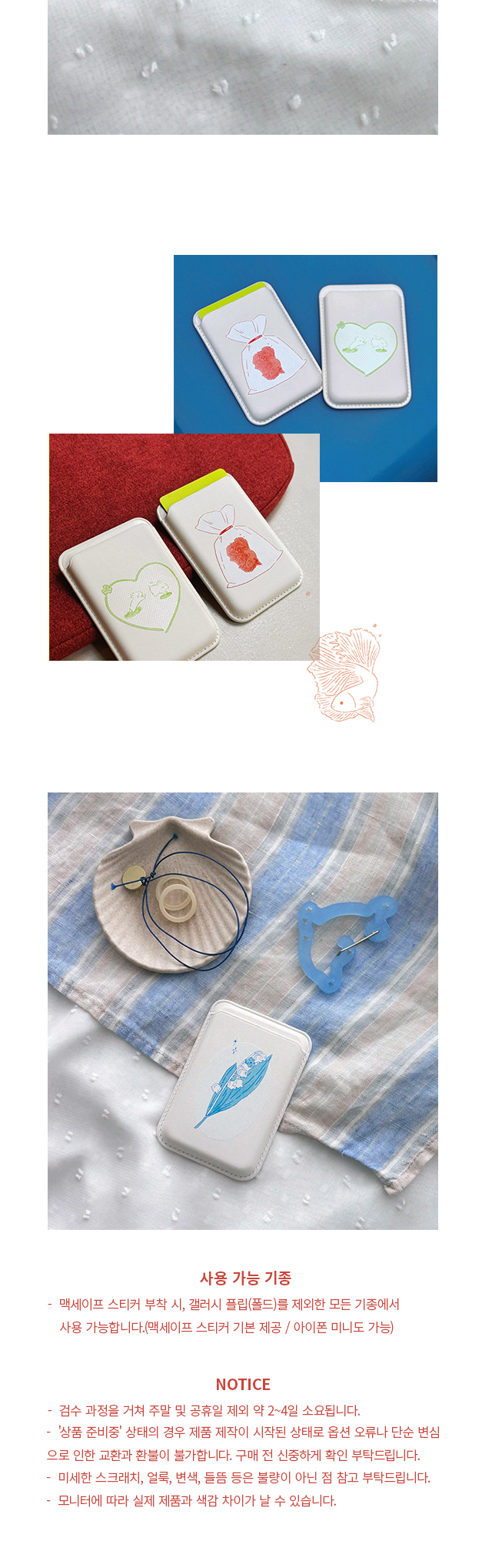 아이폰은 물로 갤럭시 핸드폰도 사용 가능합니다. 카드는 3장까지 여유있게 수납 가능합니다.