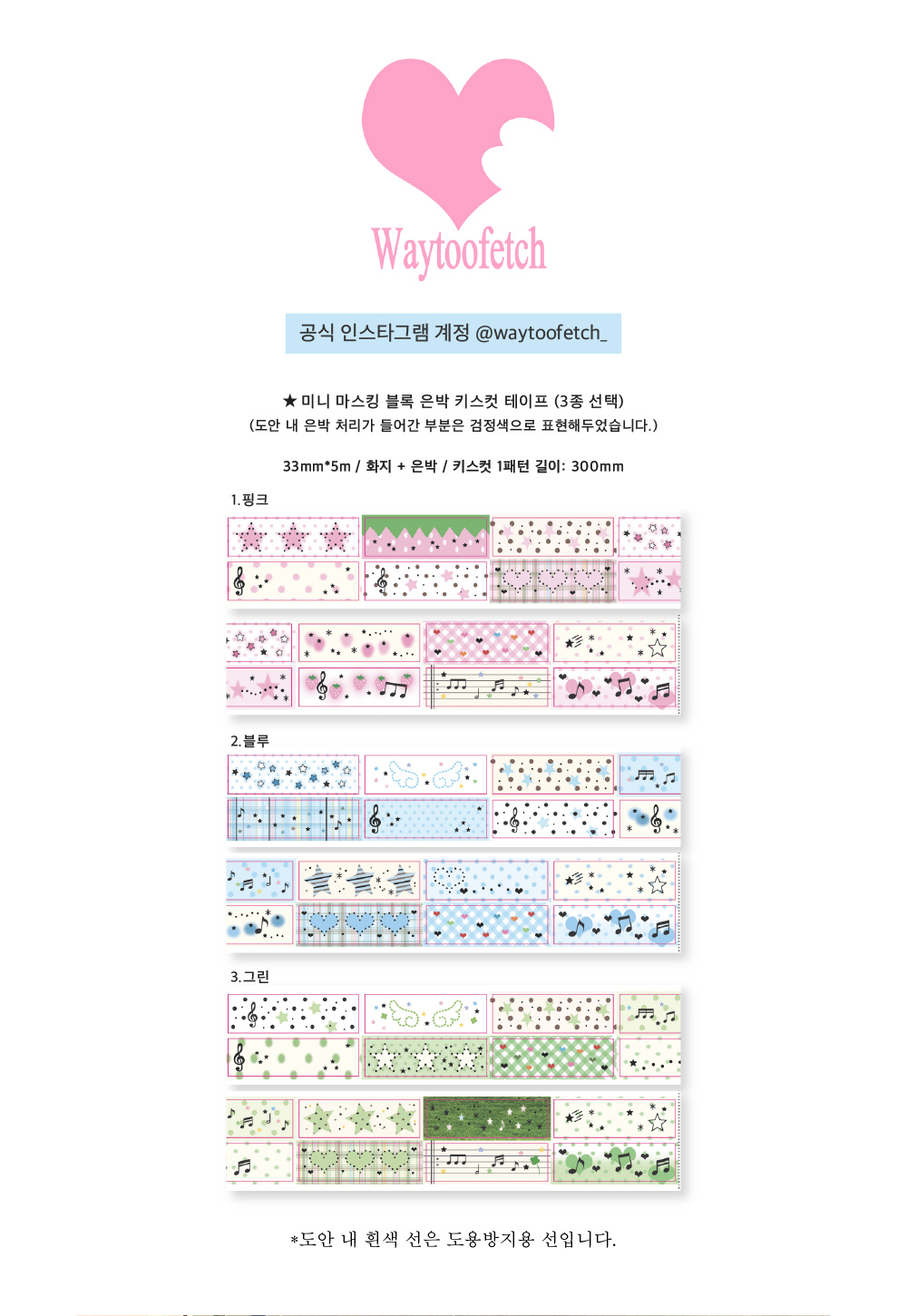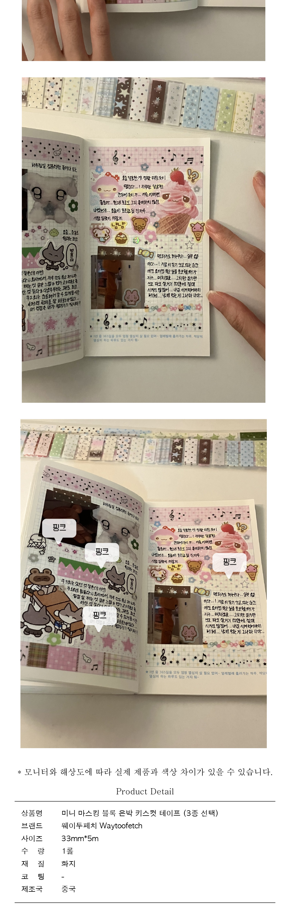 심심하지 않은 다꾸를 완성할 수 있어요! 각 조각 사이즈는 가로*세로로 40*12.5mm입니다.
