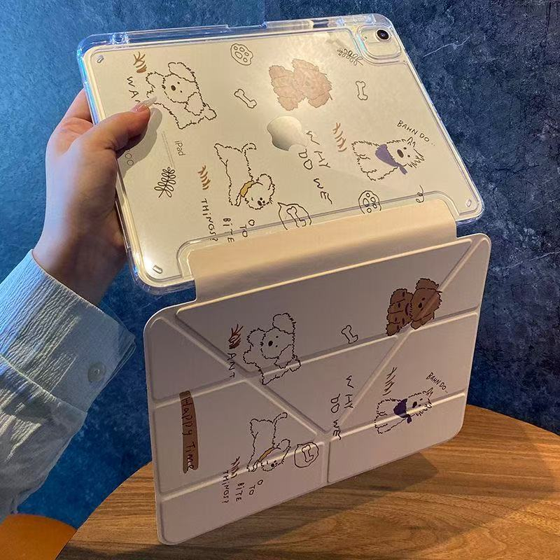 귀여운 강아지 일러스트 Y커버 투명케이스 iPad Air4 5 Pro10세대