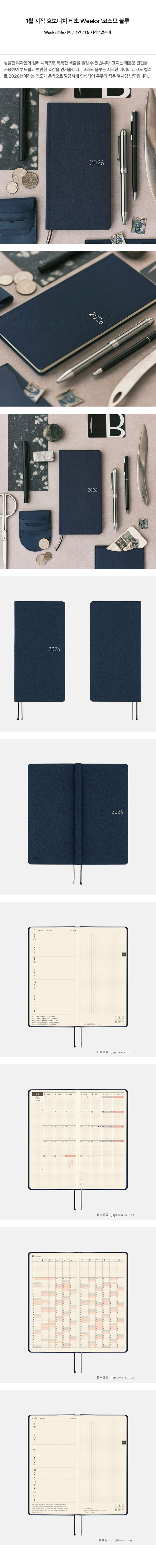 휴대성을 중시한, 주간 스케줄러 타입의 수첩입니다. 긴 지갑과 동등한 크기로, 슬림한 세로 길이 사이즈입니다.
