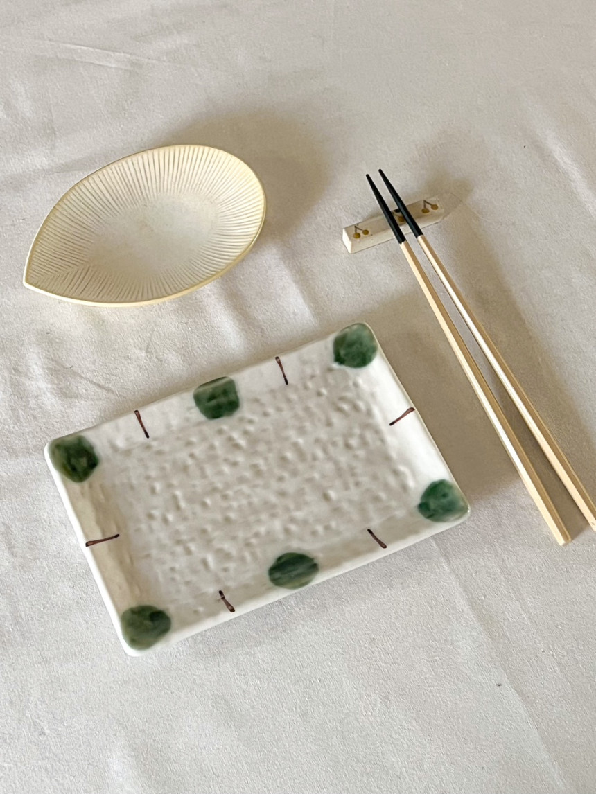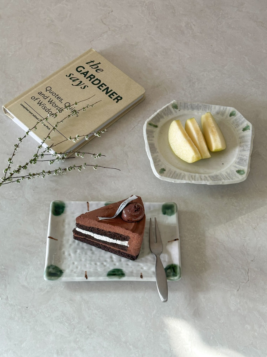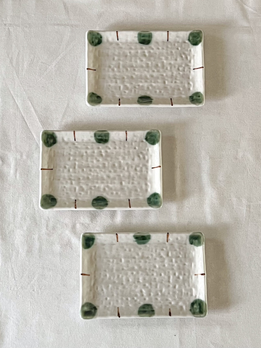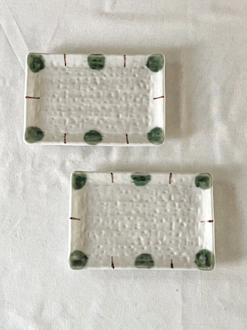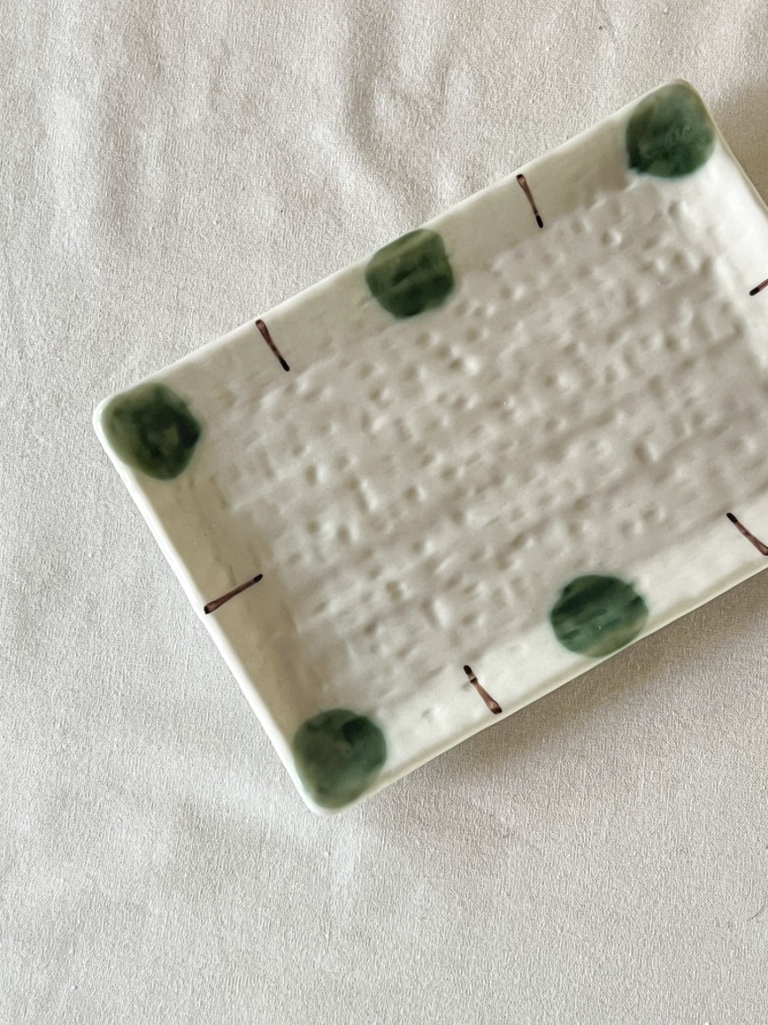 초원 사각 플레이트 전통적인 유리베 유약을 사용한 사각 접시입니다.