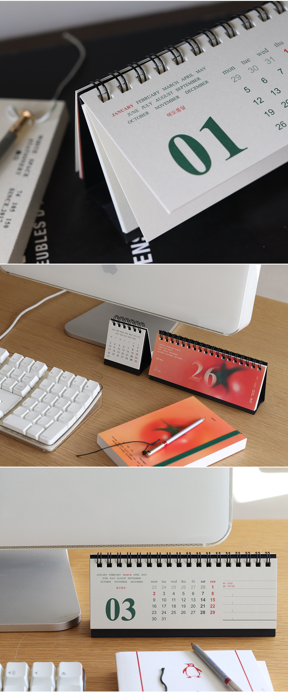 탁상형 달력입니다. 토마토를 곁들인
