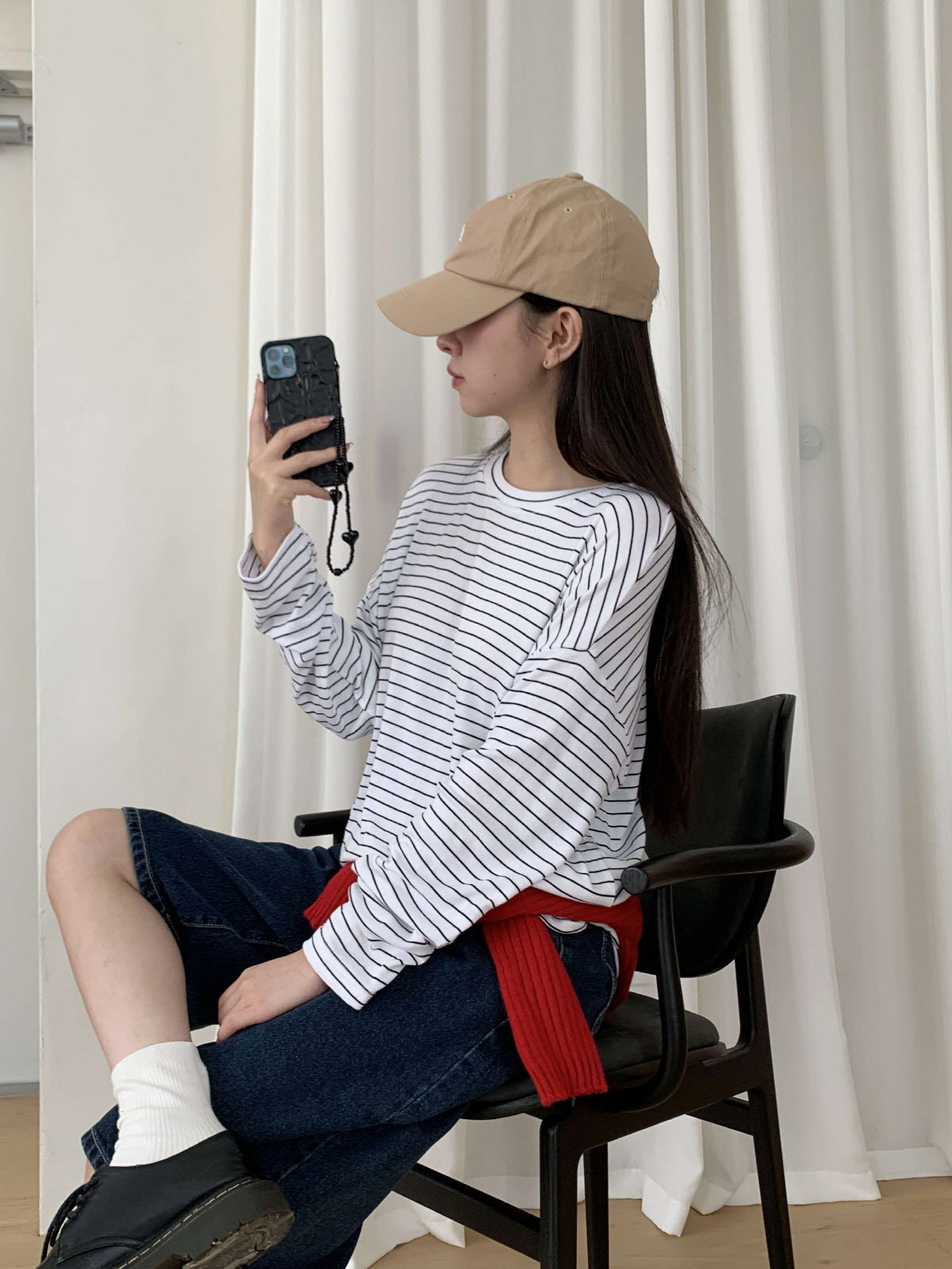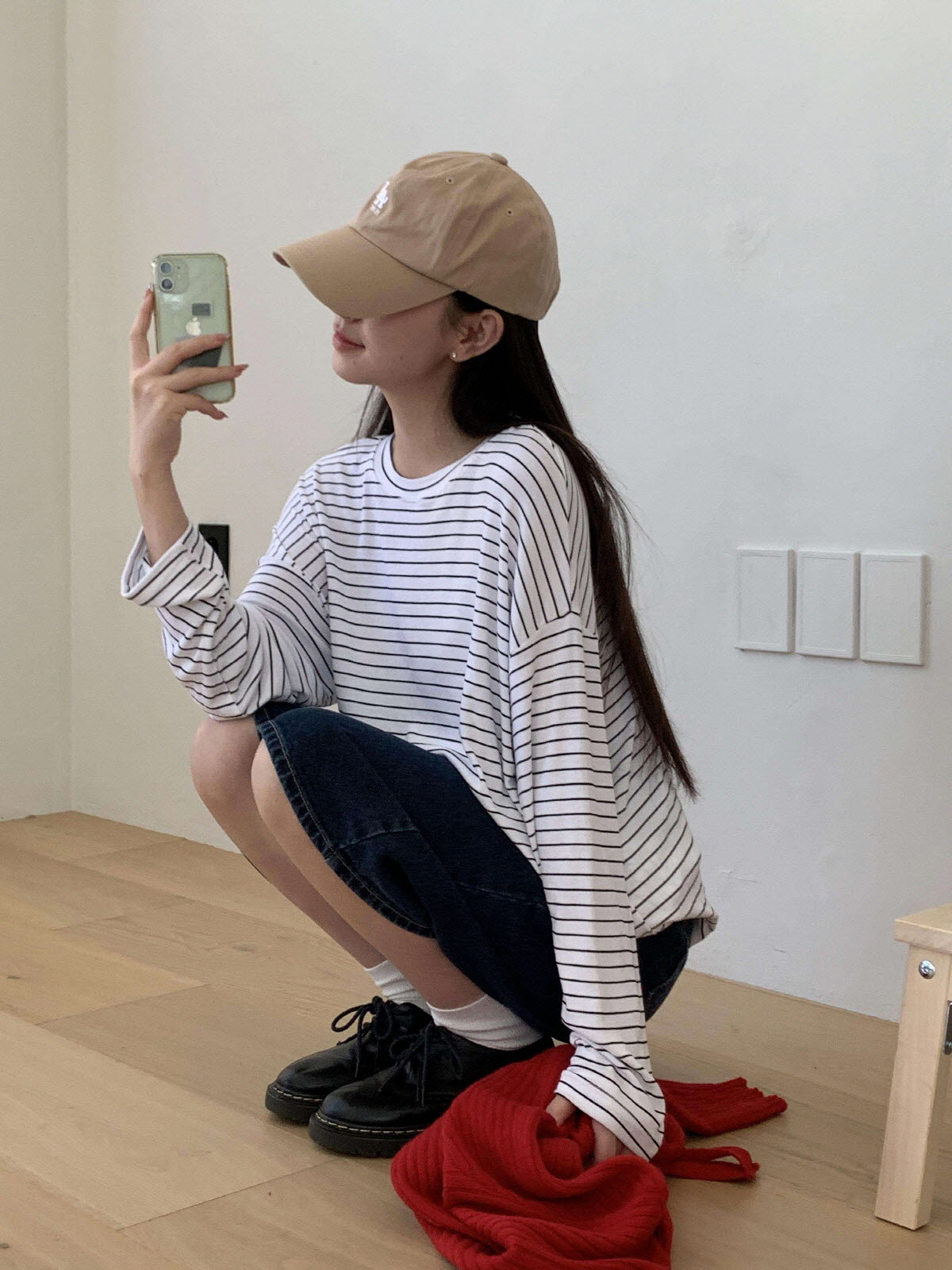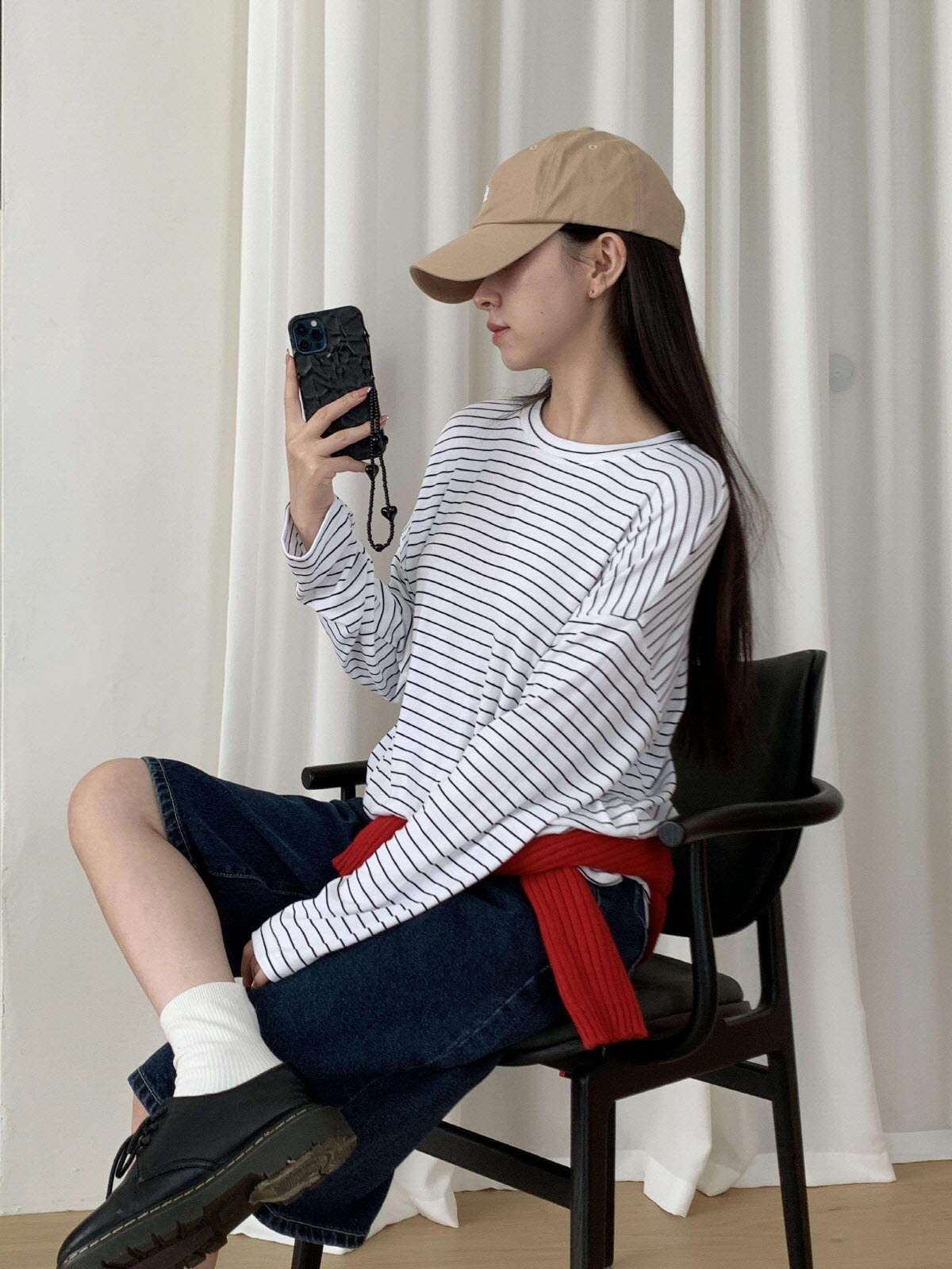 넉넉한 사이즈 핏의 긴팔 티셔츠입니다!