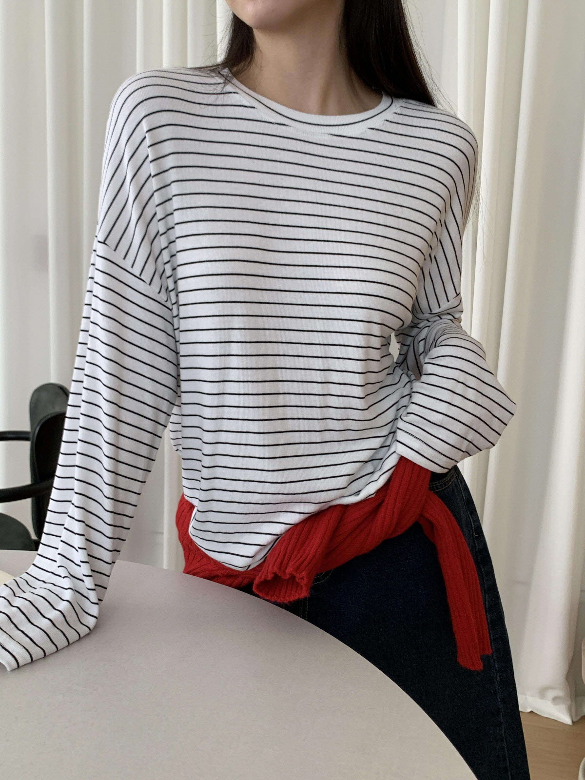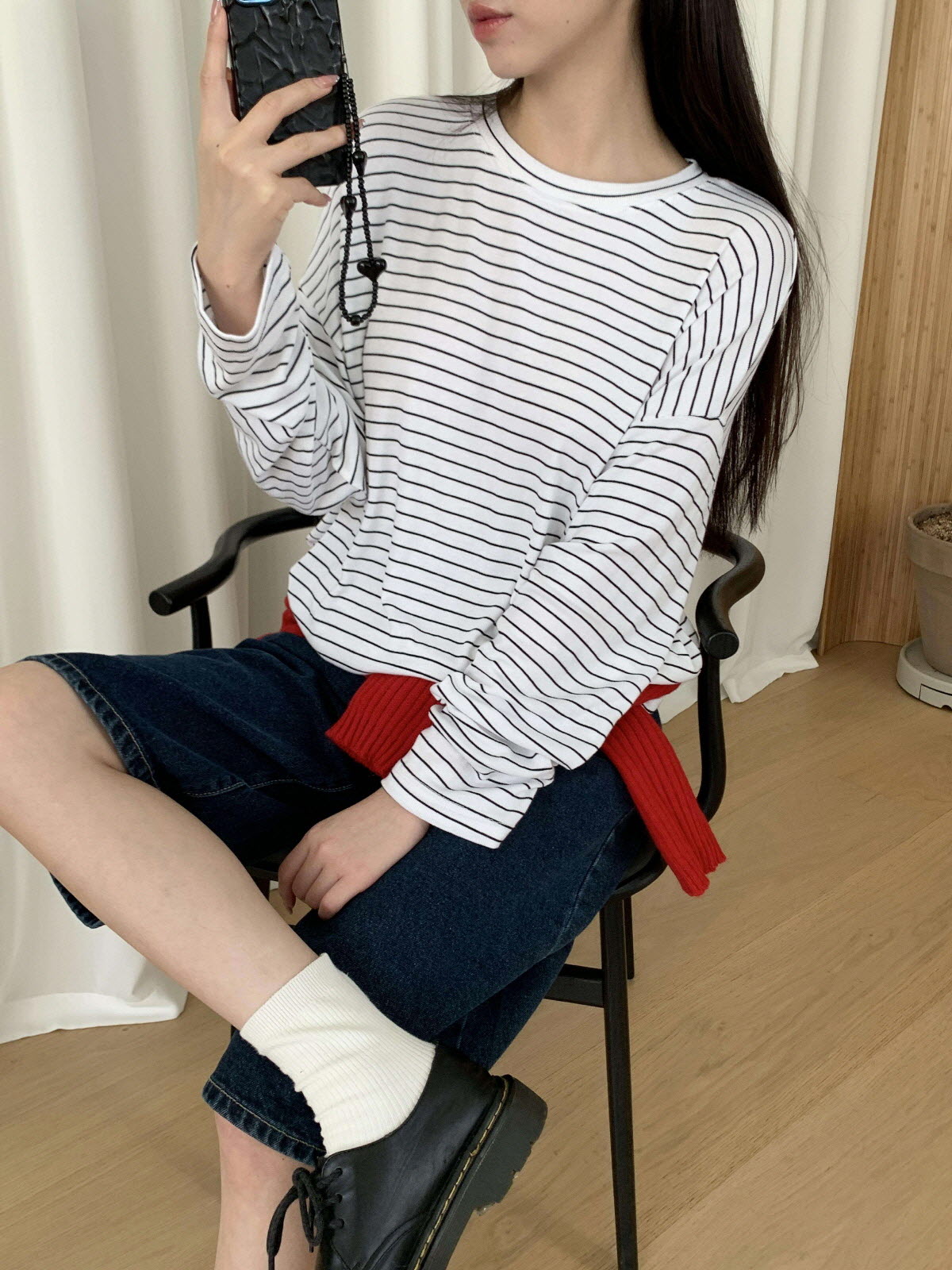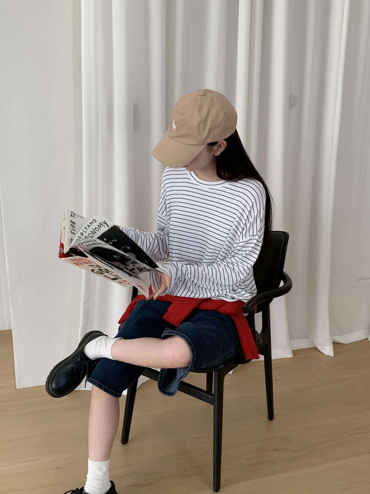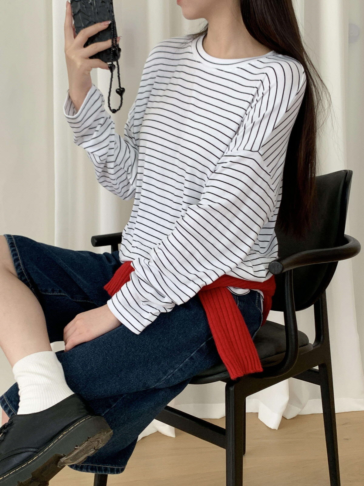 넉넉한 사이즈 핏의 긴팔 티셔츠입니다!