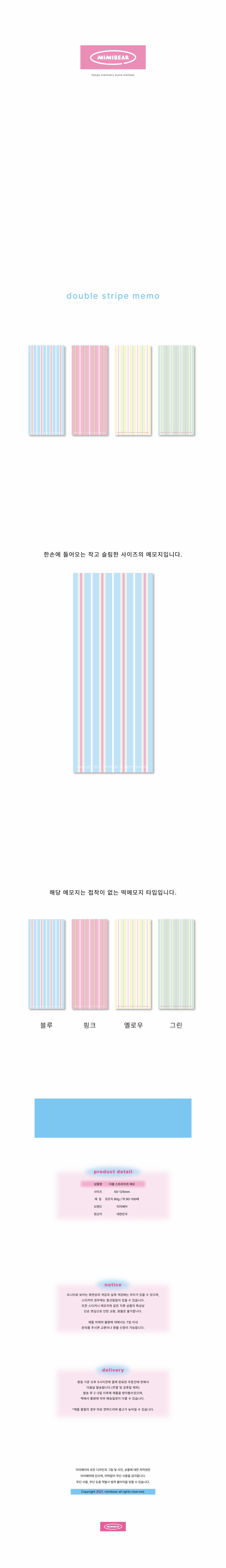 | instagram @mimibear_official ----------------------------------------------------------------------- 해당 메모지는 떡메모지 상품으로 접착력이 없는 상품입니다. 구매에 참고 부탁드립니다. ----------------------------------------------------------------------- 미미베어의 모든 상품은 텐바이텐 배송으로 텐바이텐 물류센터에서 발송됩니다. 단, 텐바이텐 배송 상품을 여러가지 함께 구매시 구매한 물건 중에 예약배송상품이 있는 경우에는 배송이 지연될 수 있습니다. |