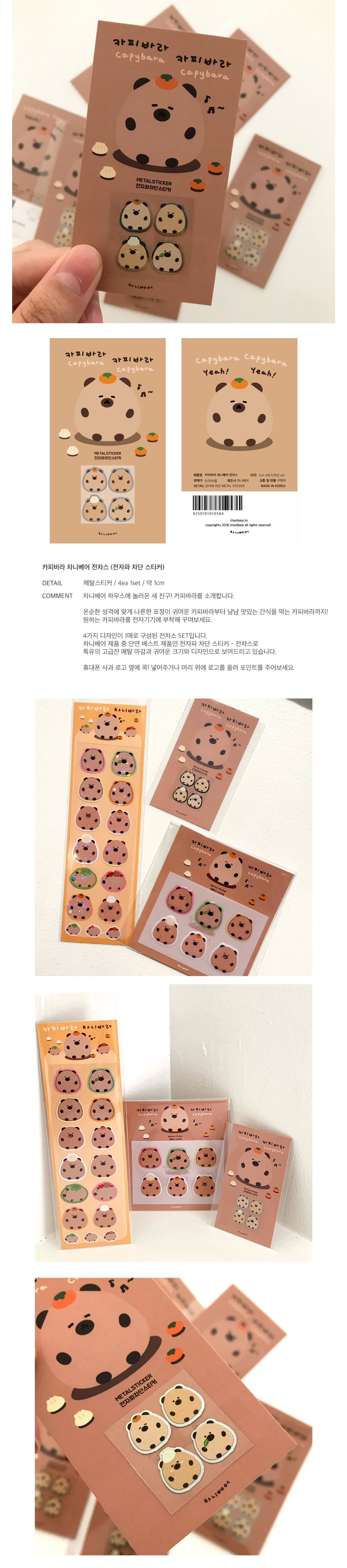 귀여운 디자인의 조합을 한 세트로 구성했습니다! 여유로운 카피바라를 전차스로 만나보세요.