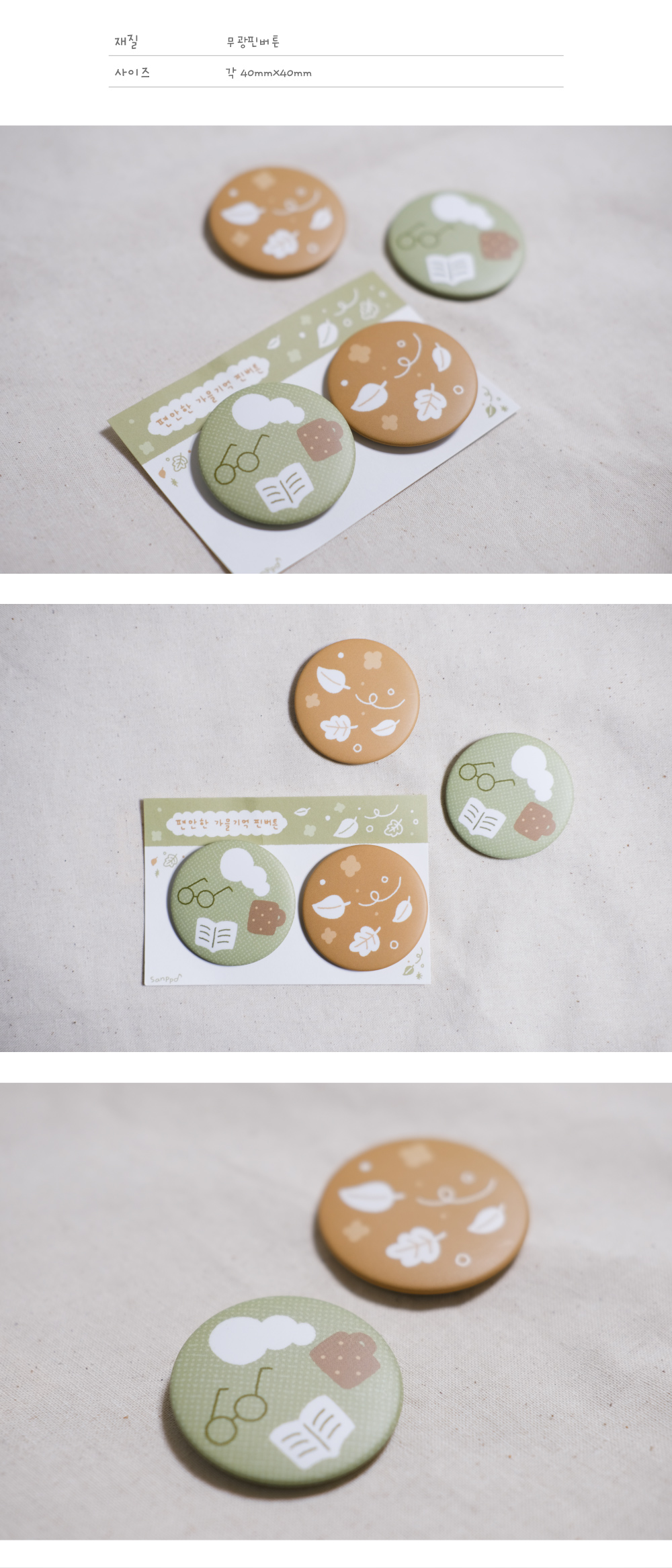 가을의 느낌을 일러스트로 담아낸 핀버튼입니다.