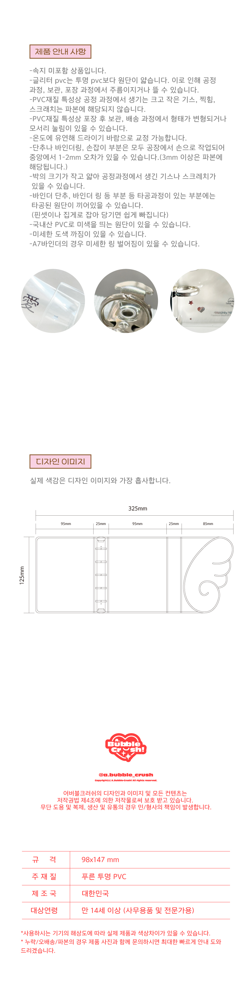 *상세페이지는 바인더 단독제품으로 추후 수정예정입니다. 가장하단의 주의사항만 참고 부탁드립니다.
