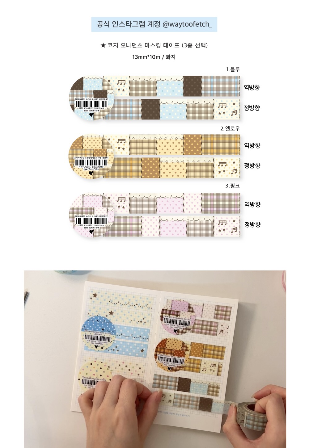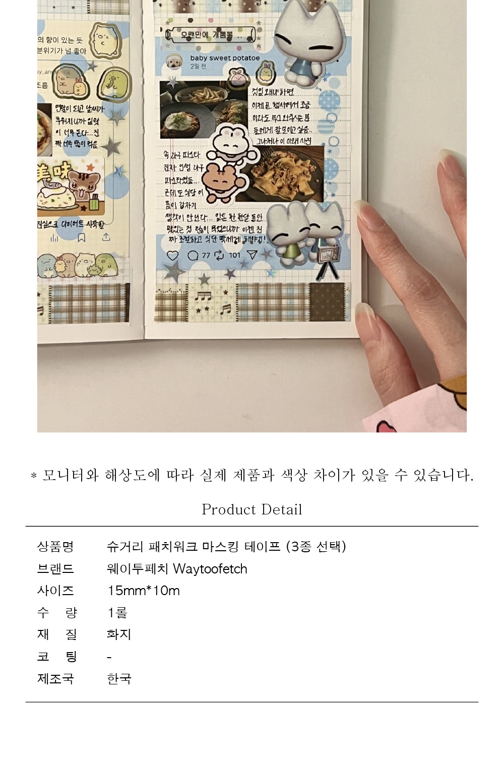 [웨이투페치] 슈거리 패치워크 마스킹 테이프 (3종 선택)