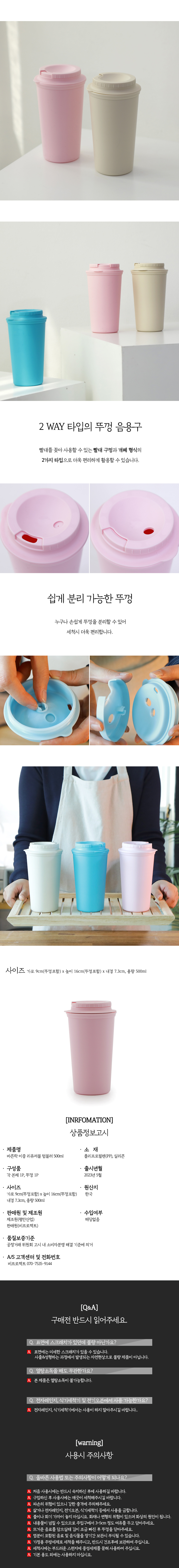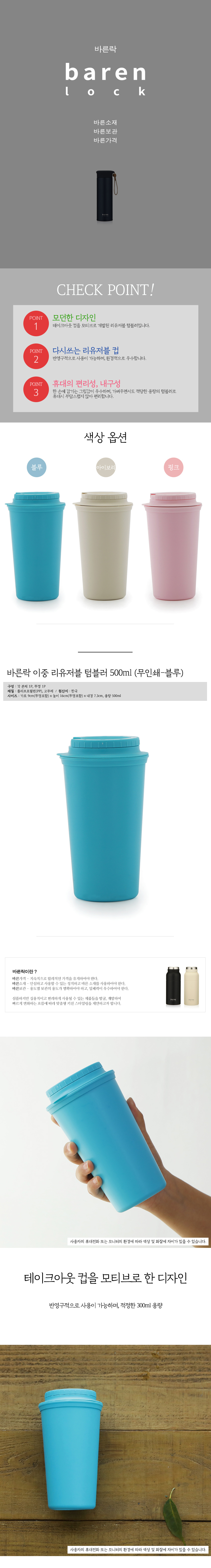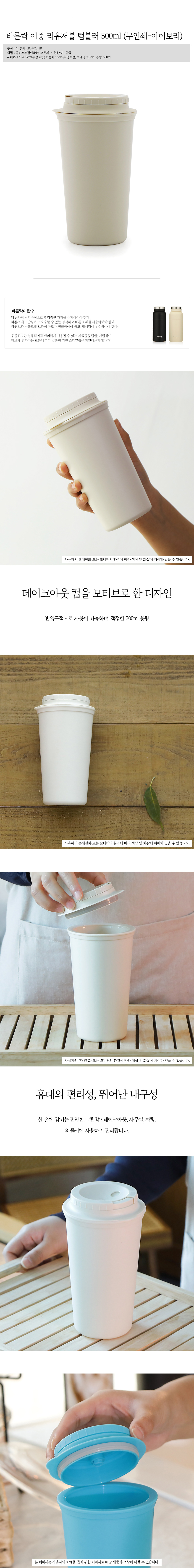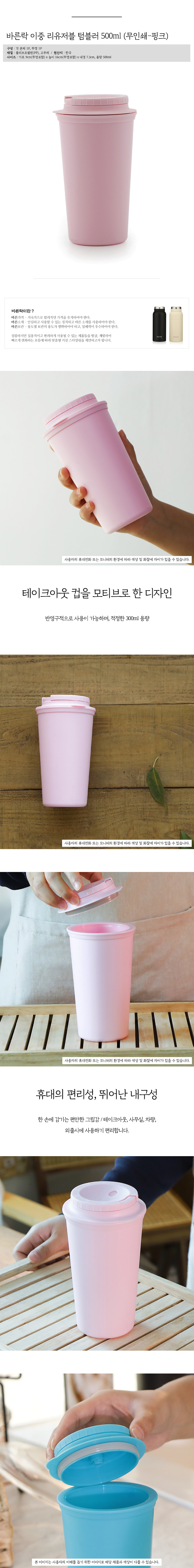 바른락 이중 리유저블 텀블러 500ml (무인쇄) 3종 택1
