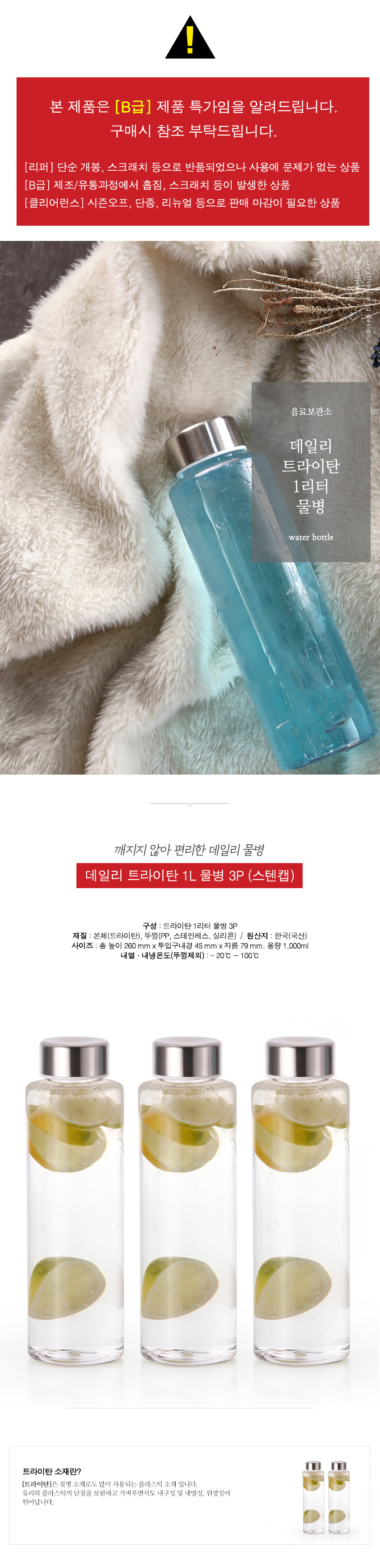 뉴데일리 트라이탄 1리터 물병 3P