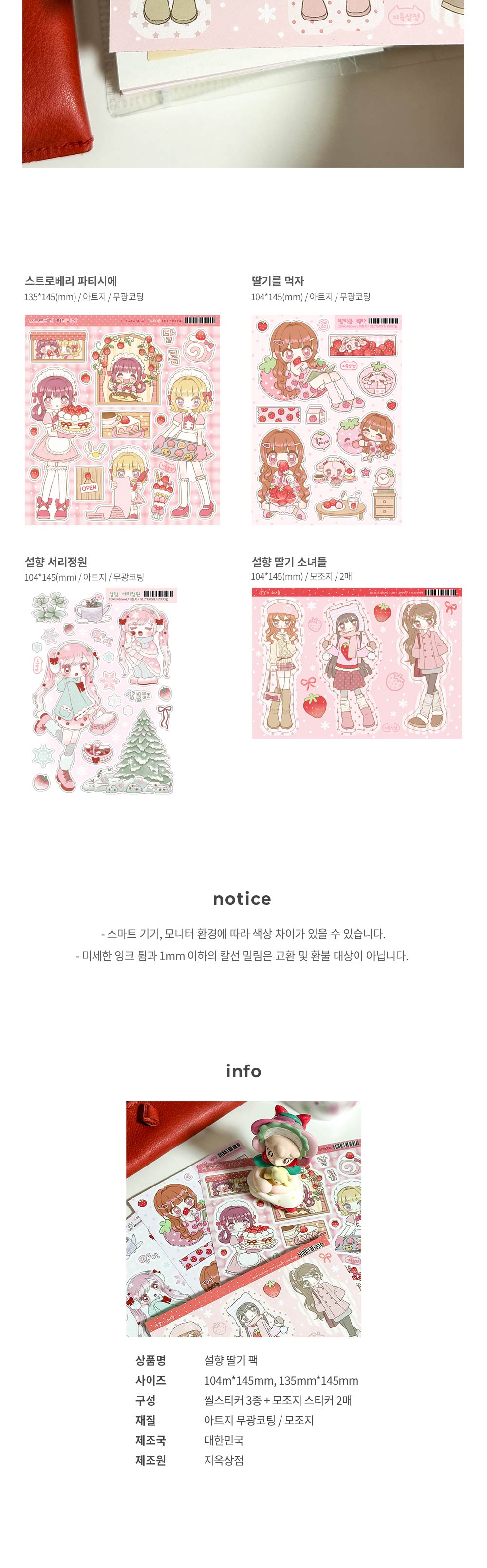 ♡ 스트로베리 파티시에 / 135*145mm / 무광코팅