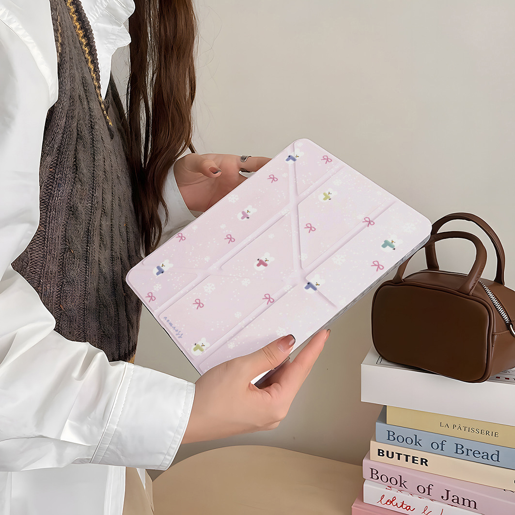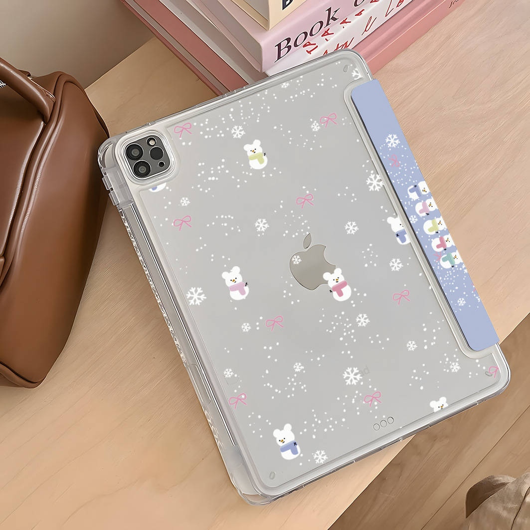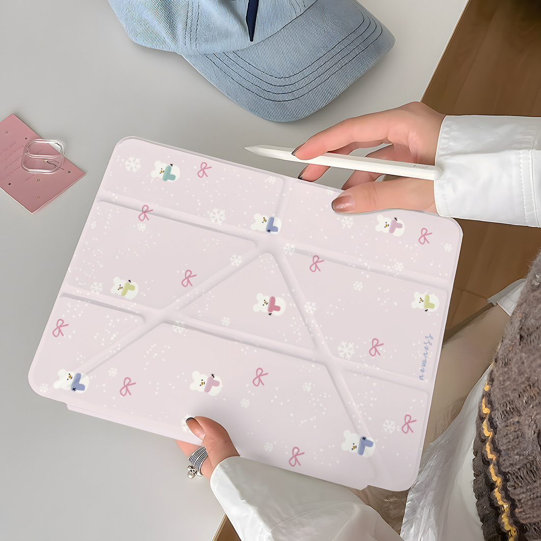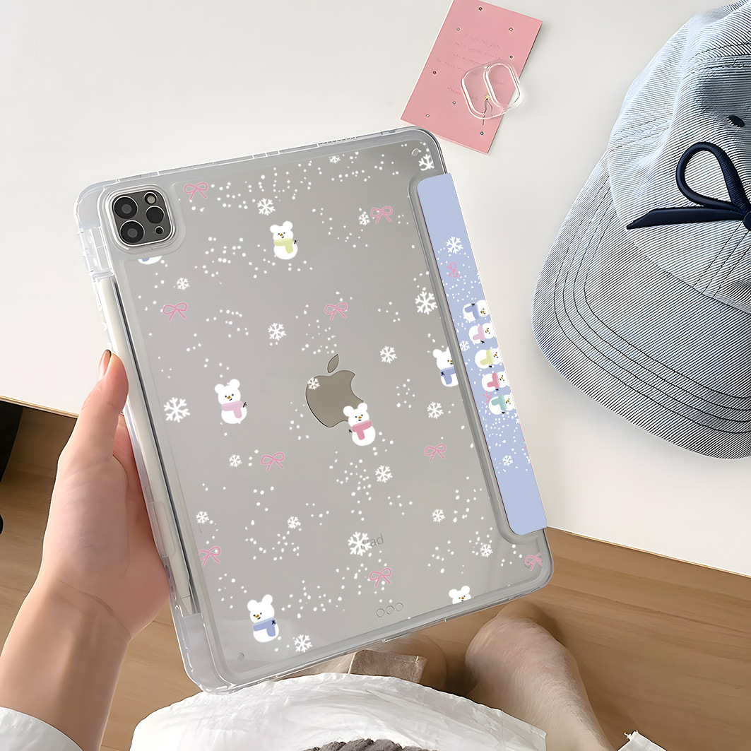 눈송이와 눈사람이 함께하는 핑크 겨울 감성 케이스, 따뜻하고 귀여운 분위기를 전해요.