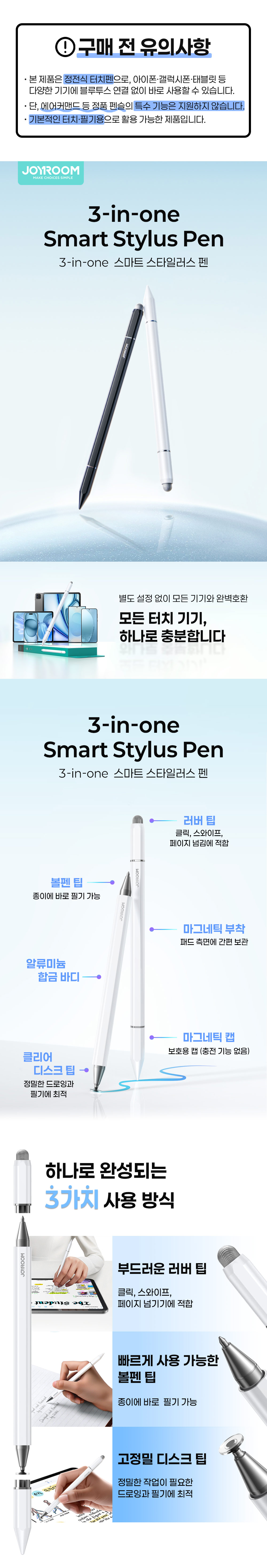 에어그립 조이룸 정전식 터치펜 3in1 듀얼팁 스마트폰 태블릿 아이패드 갤럭시탭 폴드7