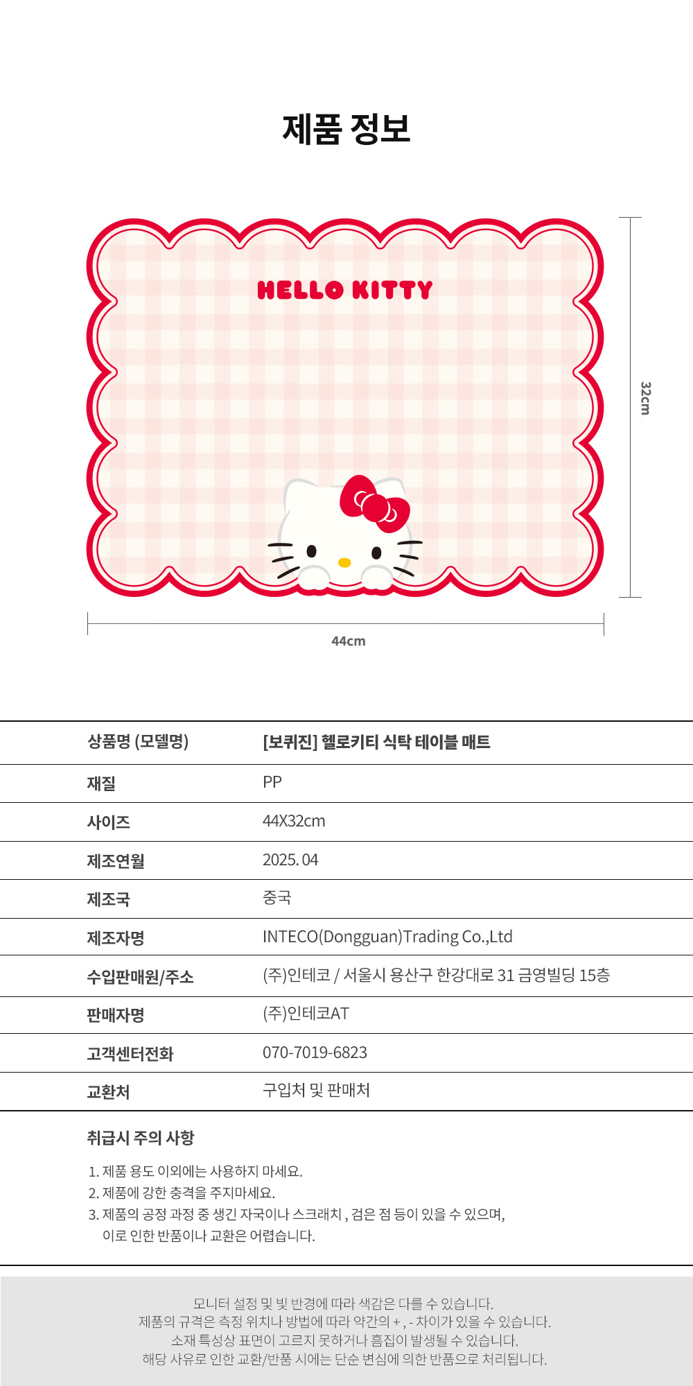 [보프렌즈] 보프렌즈 헬로키티 식탁테이블 매트