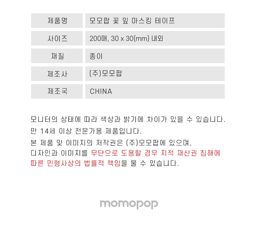 모모팝 꽃 잎 마스킹 테이프입니다