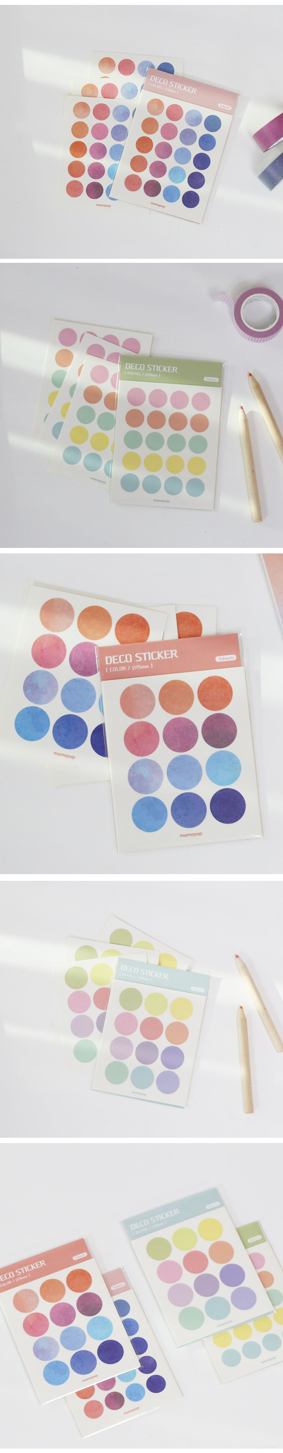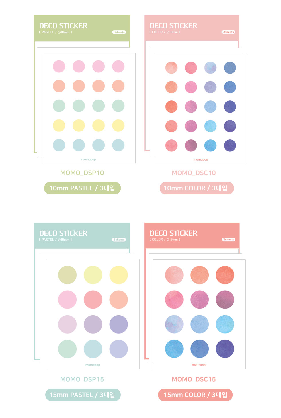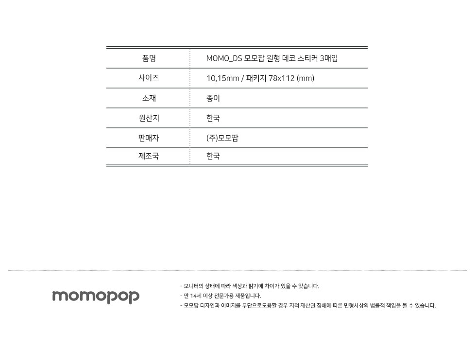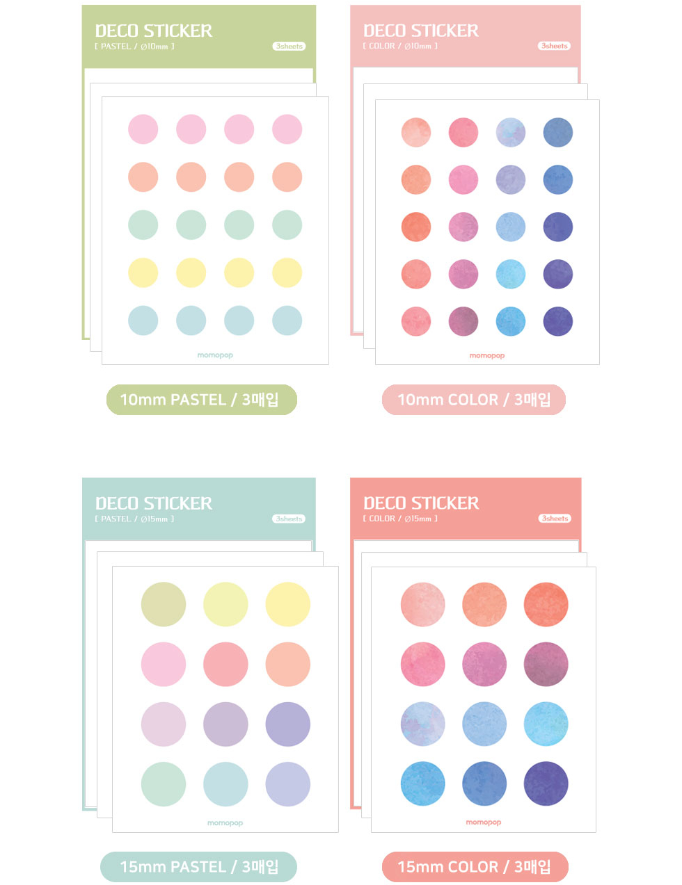 모모팝 데코 원형 스티커는 총 3장으로 구성되어 있습니다.