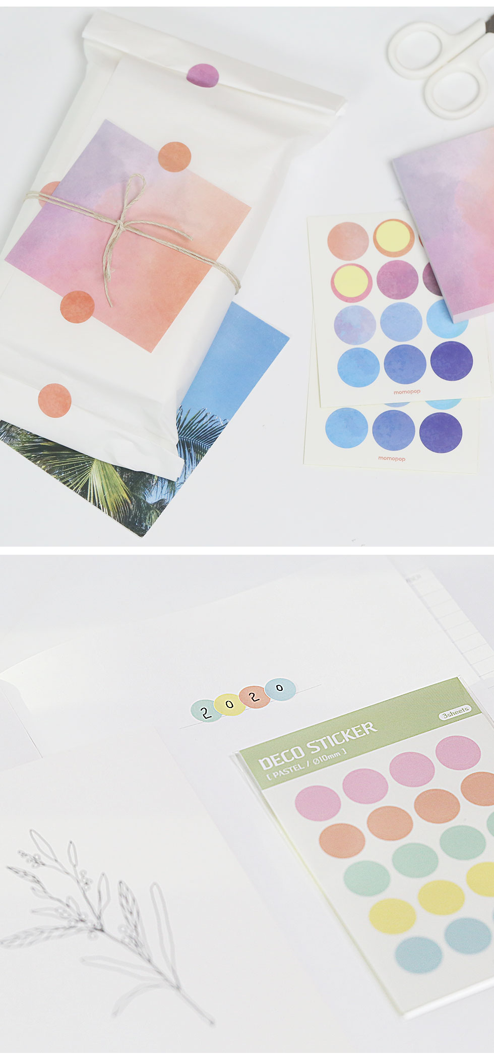 모모팝 데코 원형 스티커 는 벽면 꾸미기, 다이어리 꾸미기 등 다양한 곳에 활용할 수 있는 기본 스티커입니다. 파스텔 톤과 모모팝 감성을 담은 두 가지 톤의 스티커를 만나보세요.