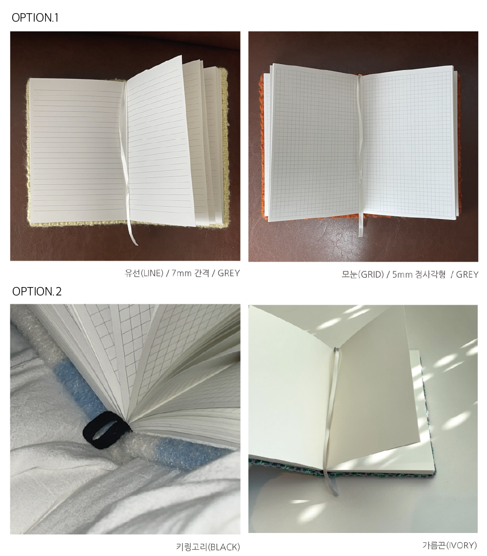 | 밍글밍글의 시그니처 핸드워크 제품으로, 패브릭과 노트를 접목한 새로운 시도와 다양한 컬러플레이로 라이프스타일에 풍성한 재미를 더합니다. SIZE : W 14 x H 21 (cm) BOOKBINDING : 양장제본 MATERIAL : 모조지 120g PAGES : 192p (96장) OPTION 무지(Lineless) 유선(Line) : 7mm 모눈(Grid) : 5mm NOTICE * 화면 해상도에 따라 색상이 다르게 보일 수 있습니다. * 사이즈는 측정방식에 따라 1~3cm 정도 오차가 있을 수 있습니다. * 패턴이 있는 제품의 경우, 제품마다 패턴 배치의 차이가 있을 수 있습니다. * 패치워크 디자인의 경우, 제품마다 패치의 모양, 크기, 디테일이 일정하지 않을 수 있습니다. * 노트의 첫 페이지와 마지막 페이지는 완전히 펼쳐지지 않습니다. 다음 페이지부터 사용을 부탁드립니다. |