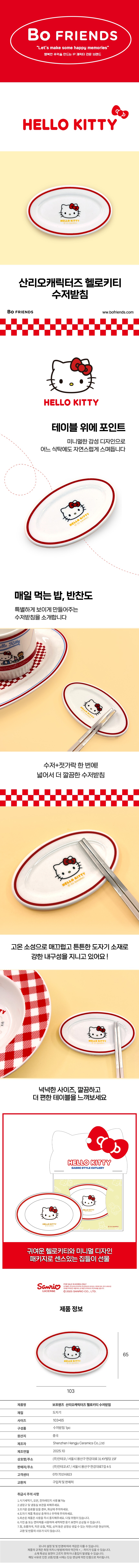 [보프렌즈] 산리오 캐릭터즈 헬로키티 수저 세트 + 수저 받침 (정품 라이센스)