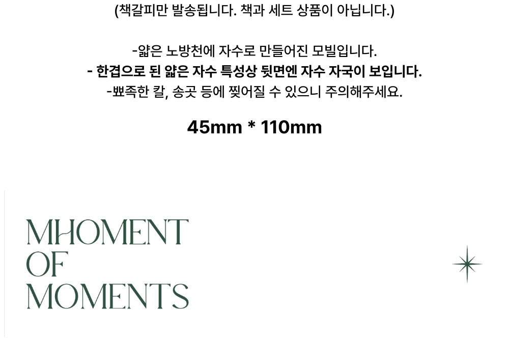 -얇은 노방천에 자수로 만들어진 모빌입니다. - 한겹으로 된 얇은 자수 특성상 뒷면엔 자수 자국이 보입니다. -뾰족한 칼, 송곳 등에 찢어질 수 있으니 주의해주세요.