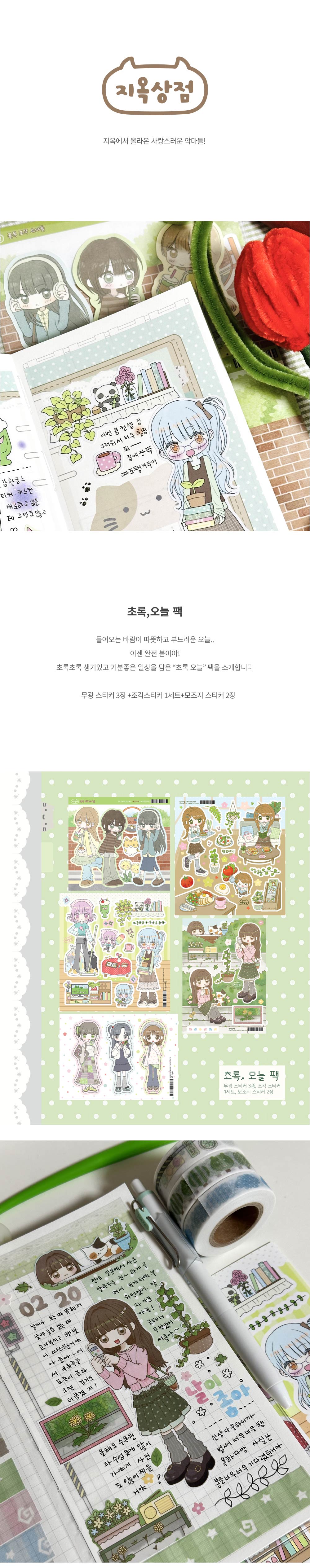 구성: 무광 씰스티커 3종 + 모조지 씰스티커 2장 + 조각 스티커 1세트