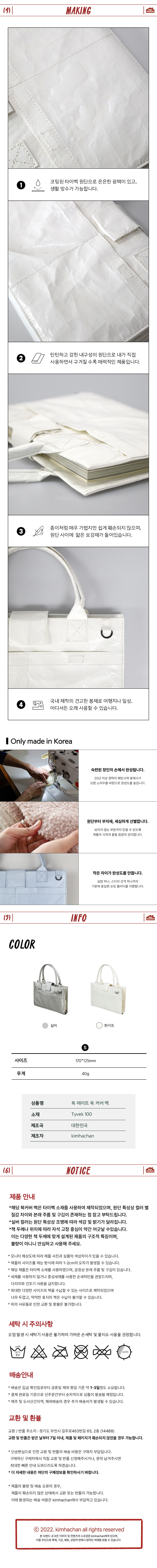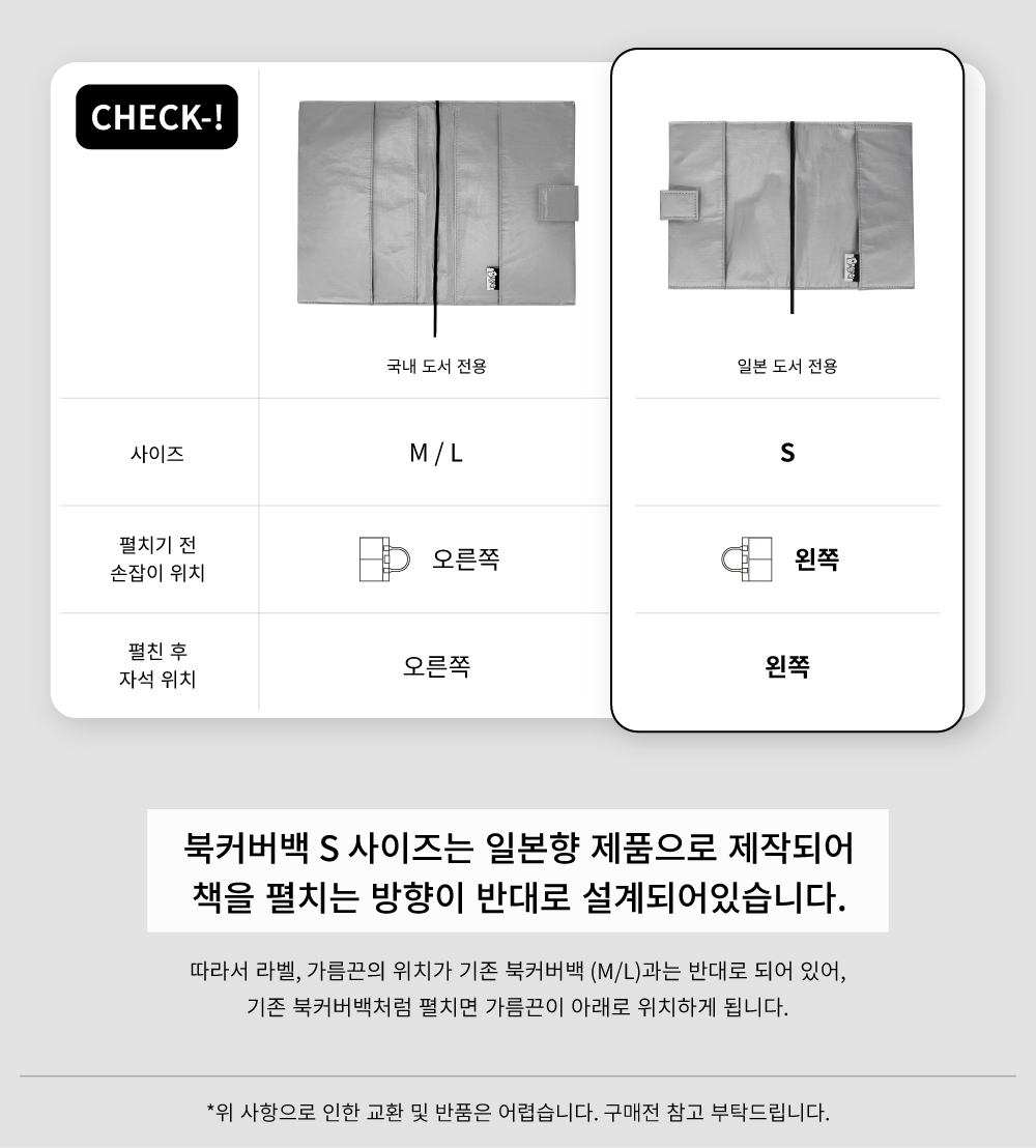 | 본 제품은 글로벌 시리즈 제품으로, 일본 도서 규격에 맞춰 제작된 ‘일본향 북메이트 북커버 백’입니다. 일본 도서의 읽는 방향에 맞춰 제작되어 기존 북메이트 북커버 백과 자석 단추의 방향이 반대입니다. 가름끈의 위치도 반대로 설계되어 있습니다. 구매 전 참고 부탁드립니다. 북 메이트 북 커버 백 간단한 수납이 가능한 가방형 북 커버 백입니다. 가볍고 탄탄한 타이벡 원단으로 제작하여 생활방수가 가능합니다. 활용도 높은 2분할 포켓에는 각종 소지품을 넣어보세요. 플래너, 독서 기록을 위한 수첩, 다이어리 커버로도 활용이 가능합니다. |