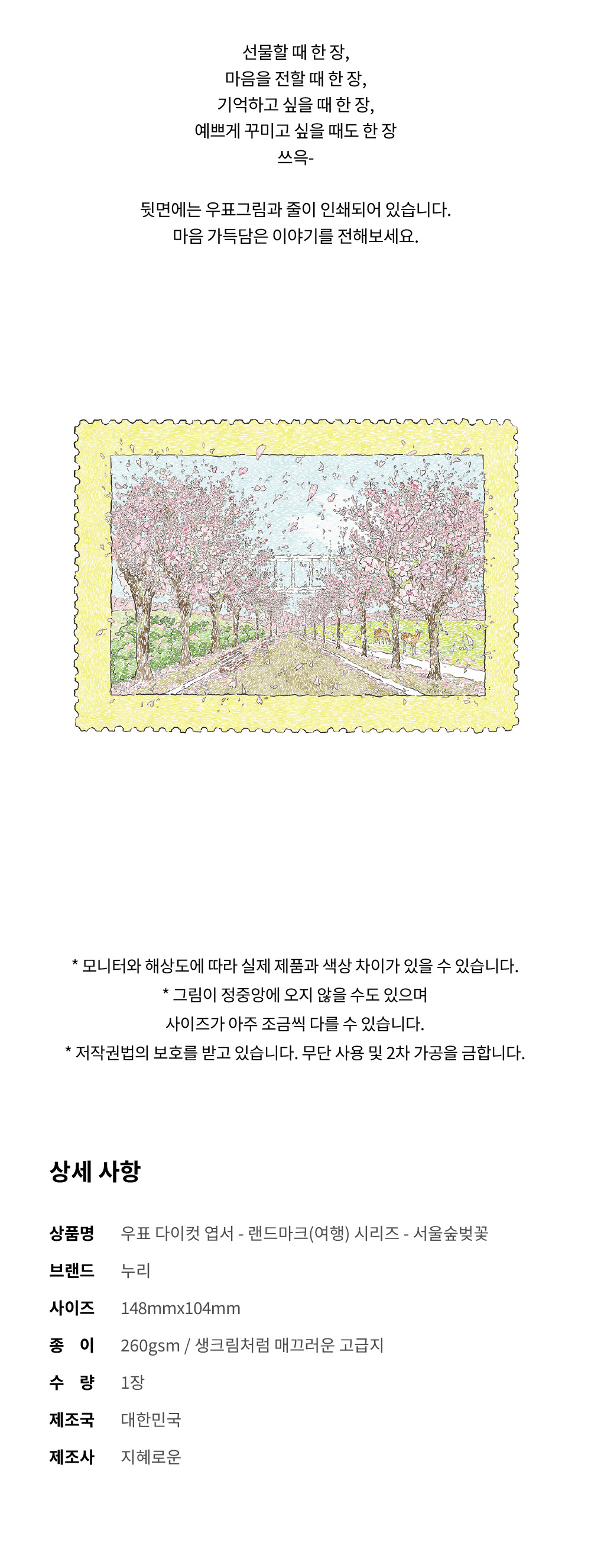[누리] 우표 다이컷 엽서 - 서울숲벚꽃