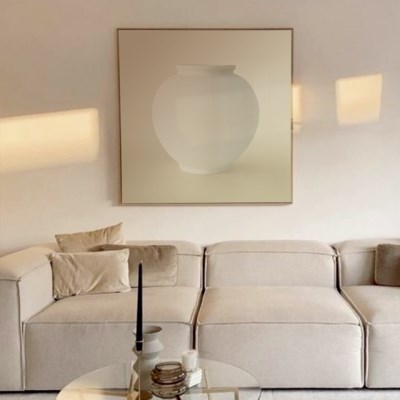 돈들어오는 달항아리 그림 풍수 액자 베이지