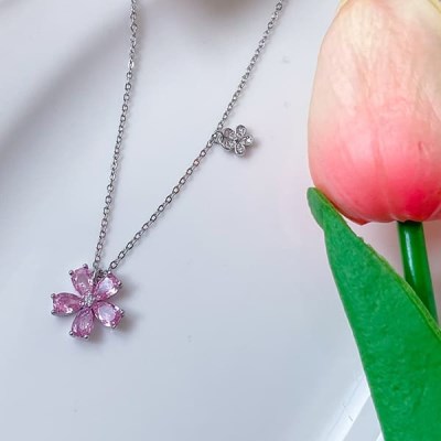 여성 큐빅 샤인 더블 트윈 플라워 목걸이