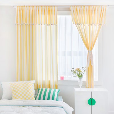 [맞춤] 하이디 옐로우 스트라이프 폼폼 쉬폰커튼 키즈커튼 | 텐바이텐