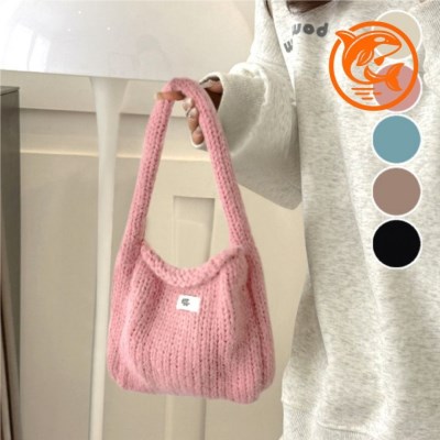귀여운 미니 니트 소재 숄더 토트백 여성용 나들이 핸드백 캠핑 가방