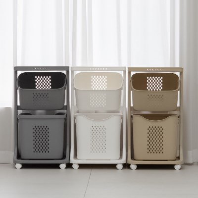 국산 엔드세이브 2단 트롤리 빨래바구니 세탁바구니 이동식 빨래통