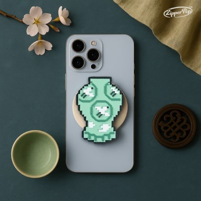[지퍼팝] 3D 픽셀 도트 운학문 고려청자 맥세이프 스마트톡