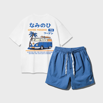 [SET] 앨빈클로 CAMPER VAN 반팔티셔츠 스트링 포인트 우븐 반바지