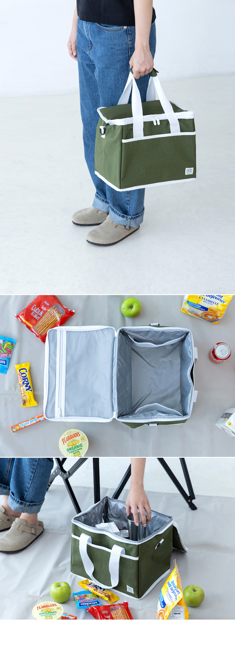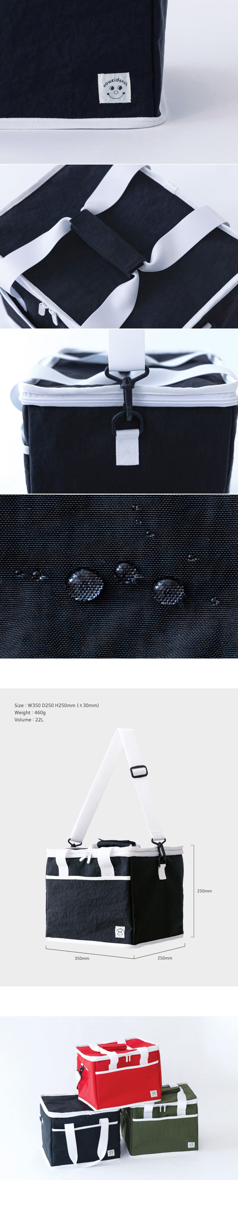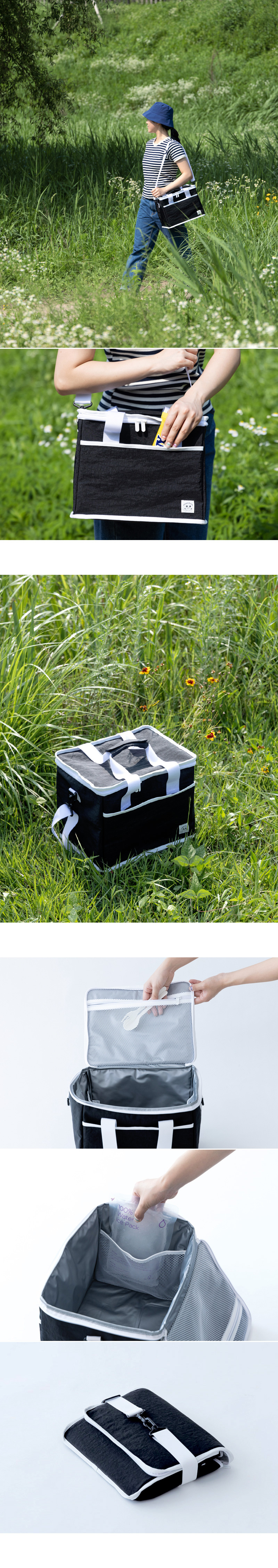 | 아웃도어 활동 시 사용하기 좋은 넉넉한 사이즈의 피크닉백입니다. 내부 원단은 도톰한 보강재와 PEVA 안감을 사용하여 보온, 보냉이 필요한 음식물을 보관할 수 있습니다. 아이스팩을 넣으면 쿨러 역할을 하여 보냉 효과가 더 오래 유지됩니다. - 생활 방수 가능한 겉감과 안감 - 작은 소지품을 넣을 수 있는 앞주머니 - 22L 용량의 내부 사이즈 - 아이스팩, 커트러리 등을 분리 수납할 수 있는 내부 포켓 구성 - 납작하게 접을 수 있어 보관이 용이함 - 탈부착 가능한 크로스 끈 포함 (크로스 끈 너비 : 38mm / 길이 조절 : 최소 550mm ~ 최대 1100mm) <사용 시 주의사항> - 겉감과 안감은 물에 쉽게 젖지 않지만, 봉제 상품 특성상 100% 방수는 되지 않습니다. - 내부에 많은 양의 액체가 고여 있을 경우, 박음질 사이로 새어 나올 수 있습니다. - 아이스팩은 손수건이나 얇은 원단에 감싼 뒤 가방에 넣어주세요. - 날카로운 칼이나 커트러리를 바로 넣으면 내부 원단이 손상될 수 있습니다. - 보냉재의 종류와 양, 날씨에 따라 보냉 유지 시간은 달라질 수 있습니다. <세탁 시 주의사항> - 오염된 부분만 물티슈나 마른 수건으로 닦은 후, 자연 건조해 주세요. - 기계 세탁을 하거나 비틀어 짜면 제품이 변형될 수 있습니다. - 건조기 사용 금지 |