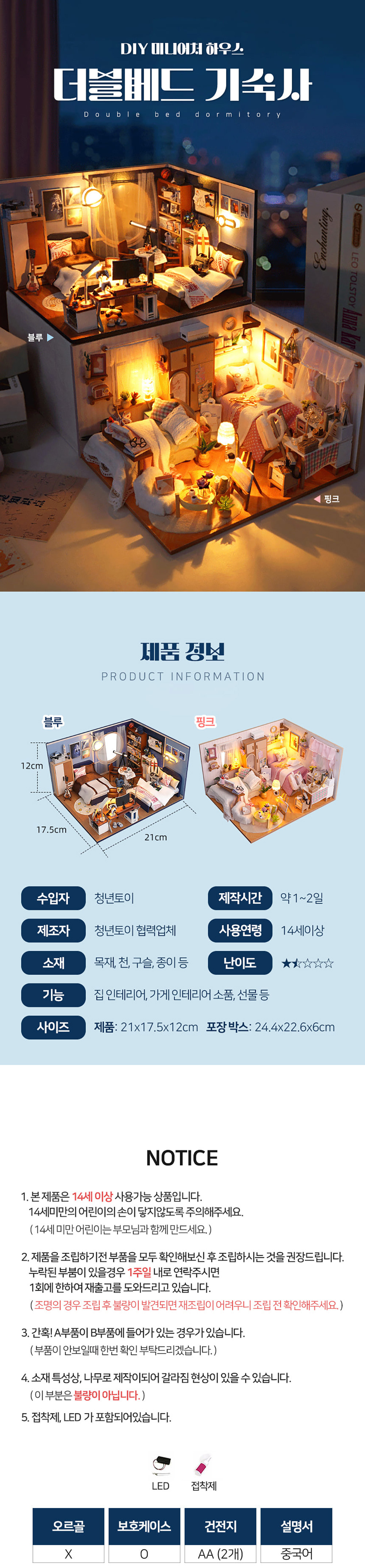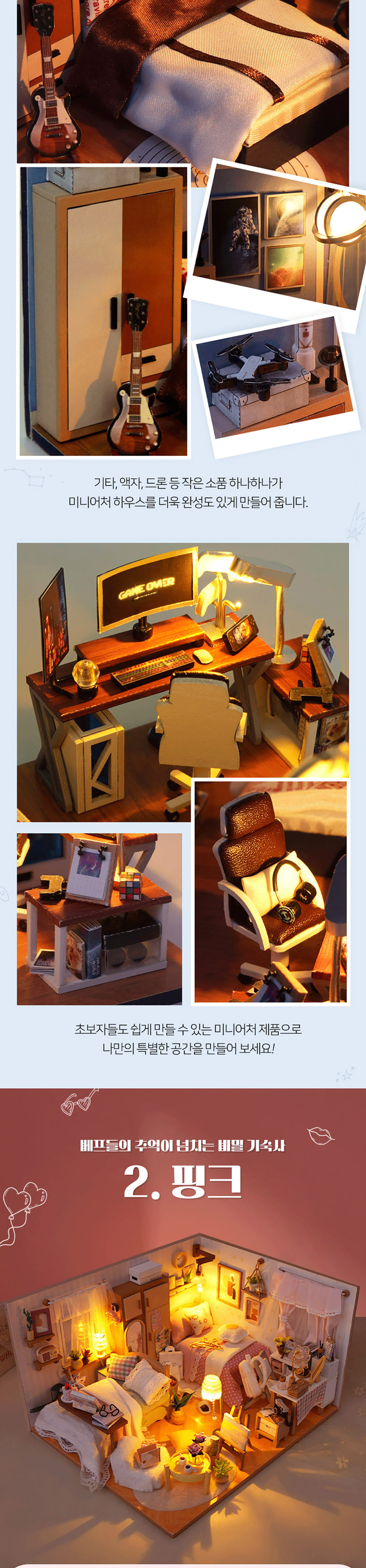 블루, 핑크 두가지 디자인의 DIY 미니어처 하우스 제품입니다 :)