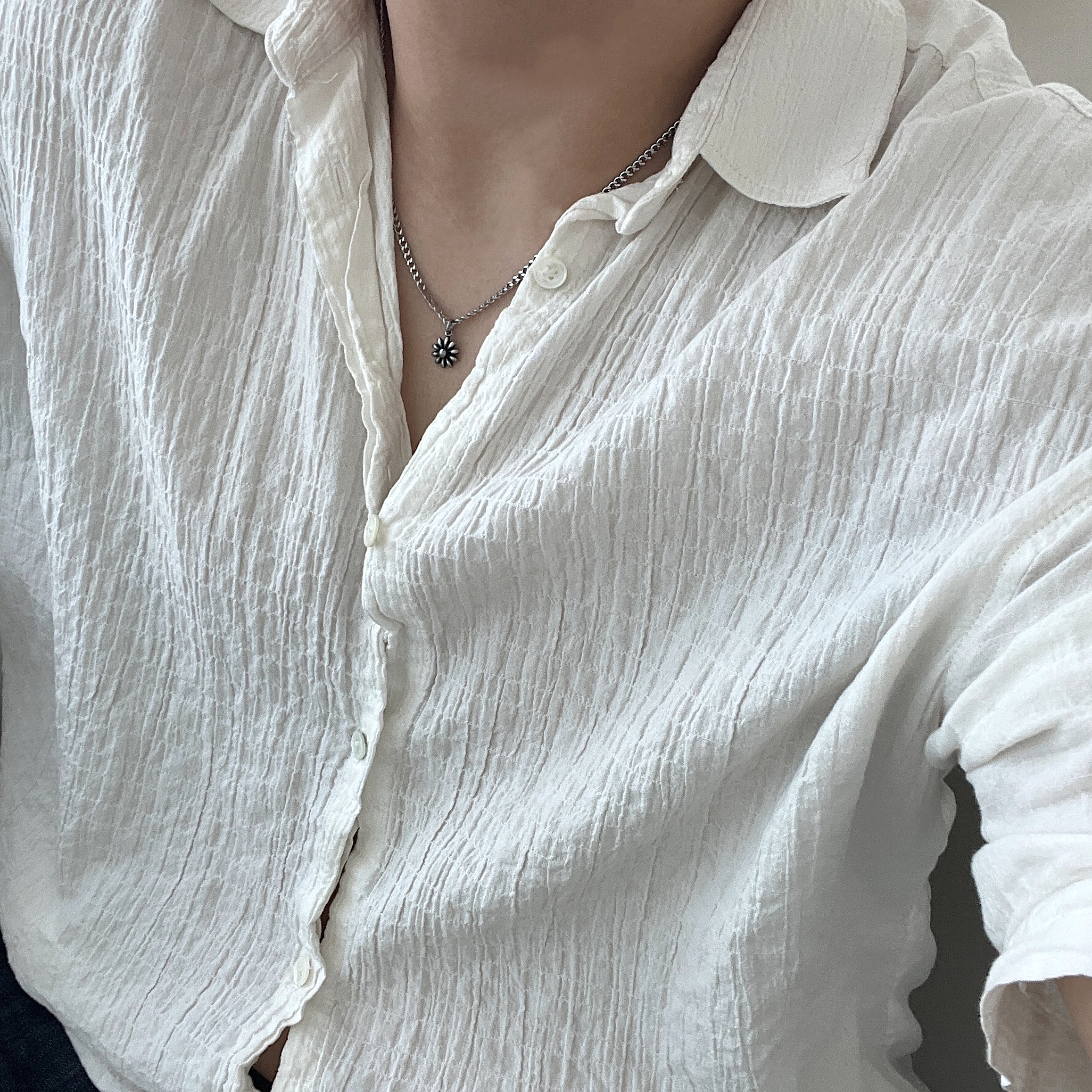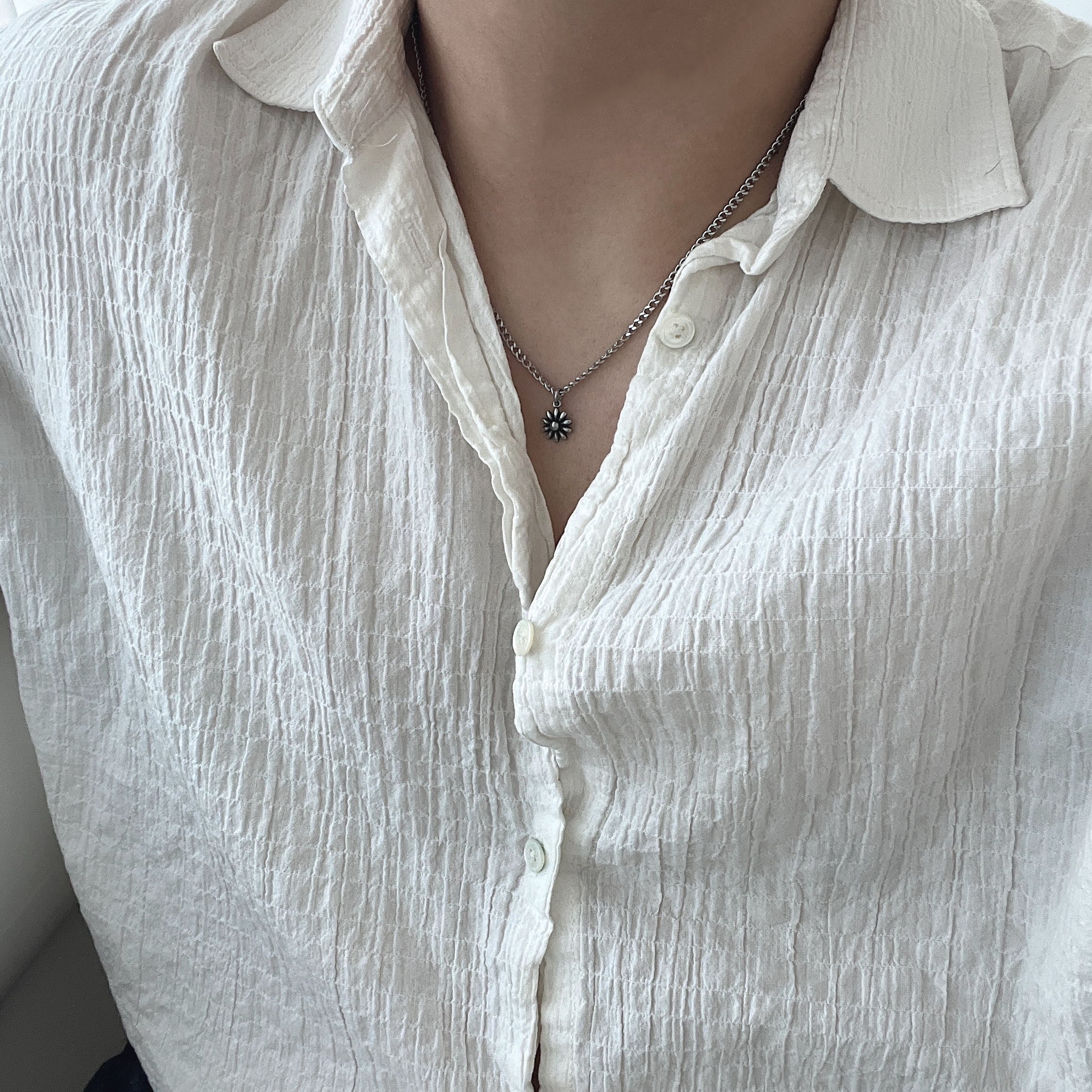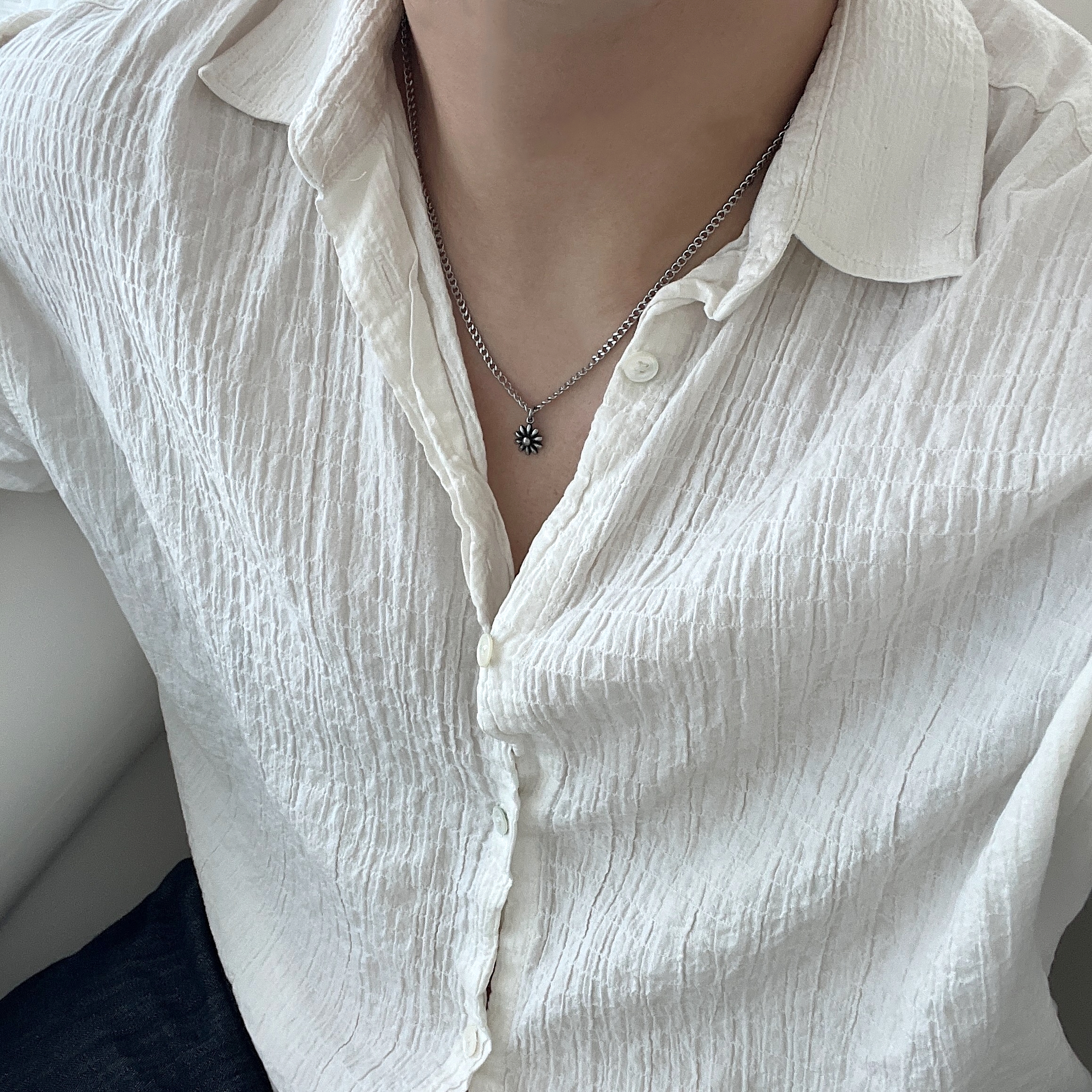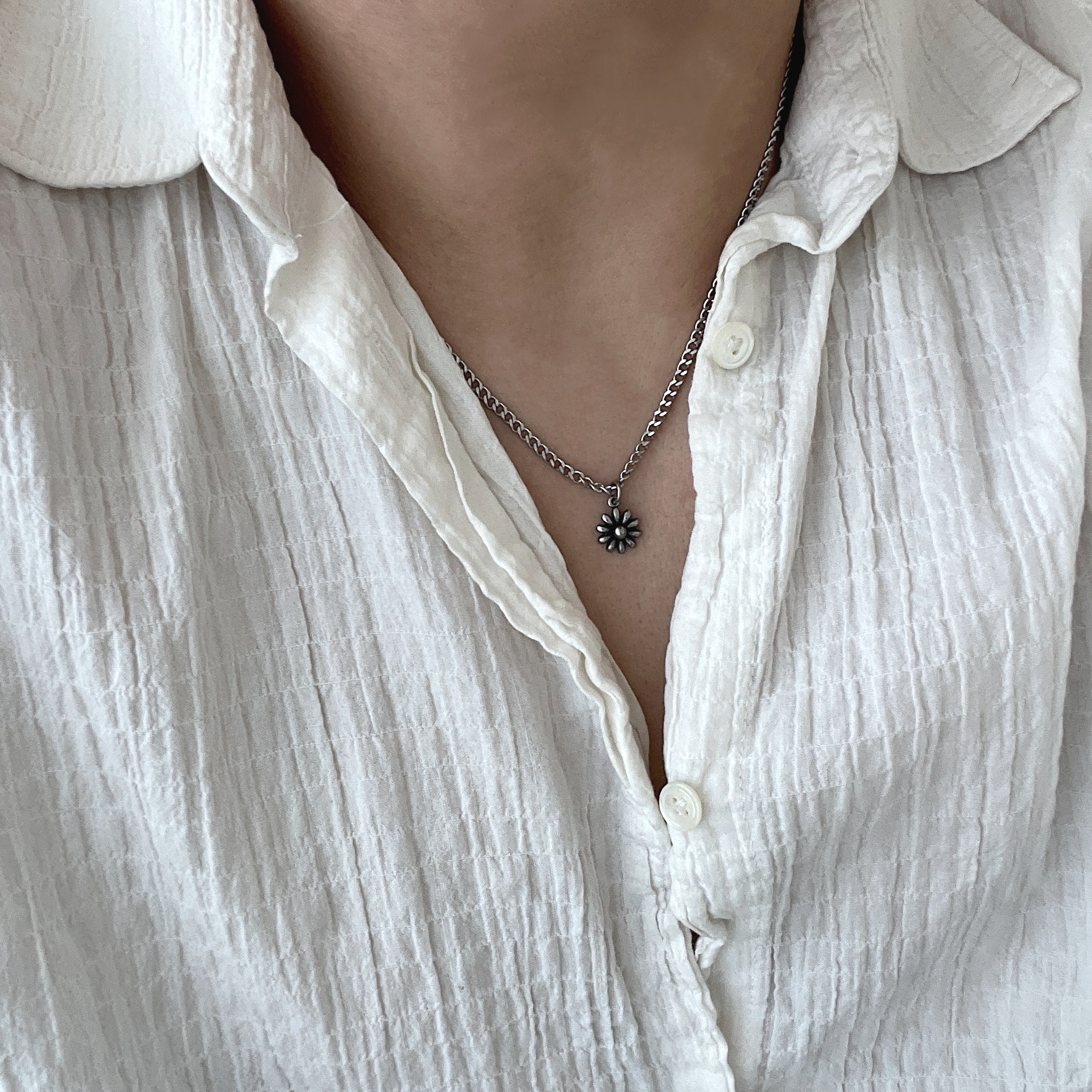 작은 플라워 팬던트로 완성한 미니멀 포인트