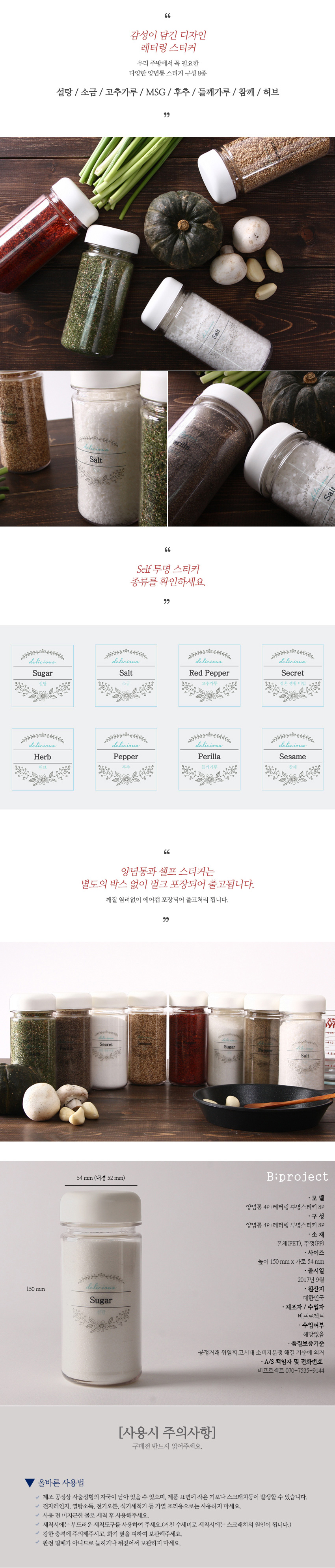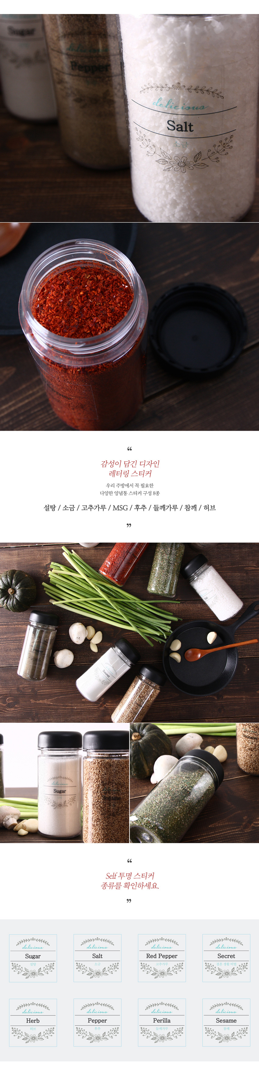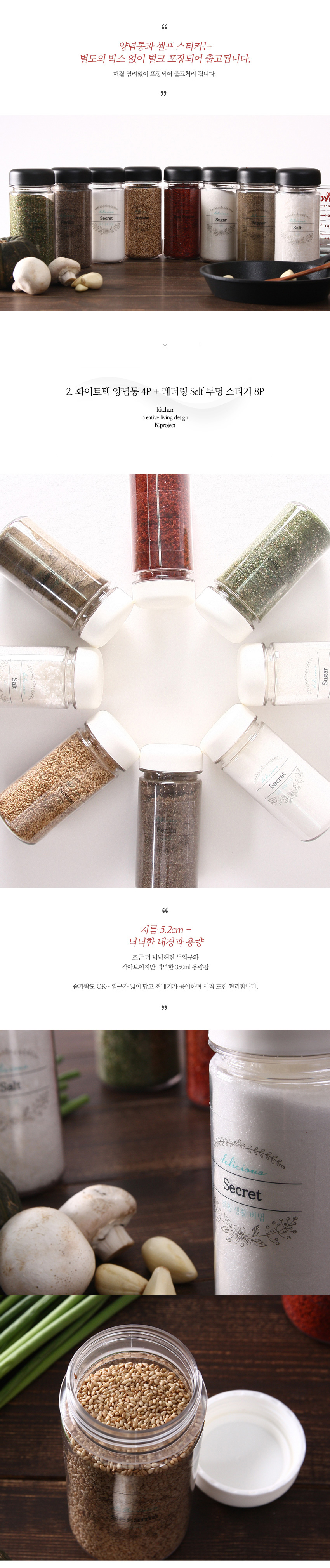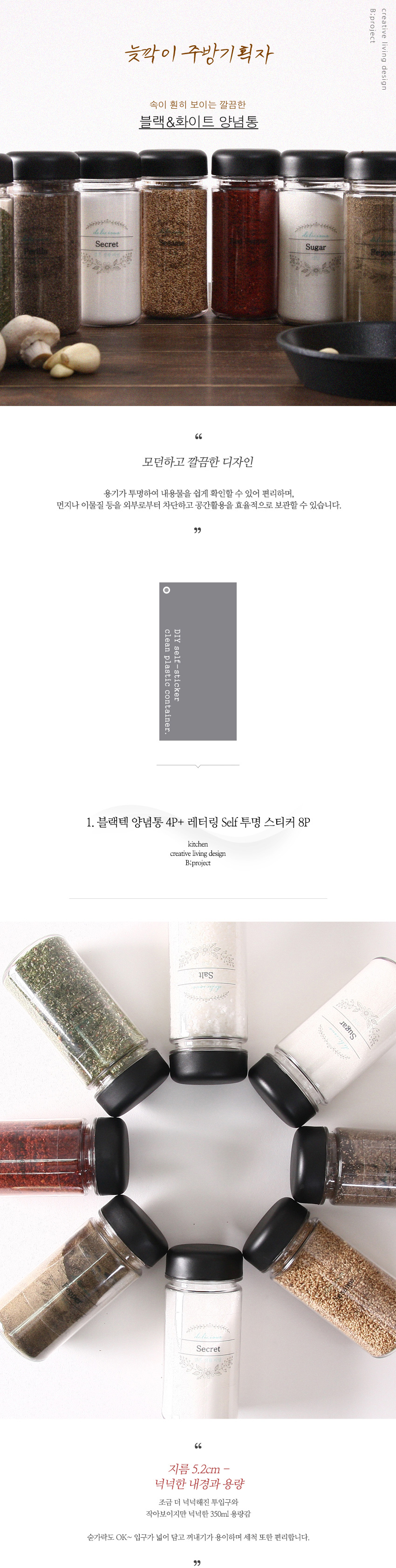 실속형 양념통 4p+self 투명 스티커 8종(블랙&화이트)
