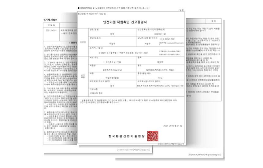 생활화학제품 안전기준 적합된 접착제로 안전하게 사용 가능합니다. ? ?