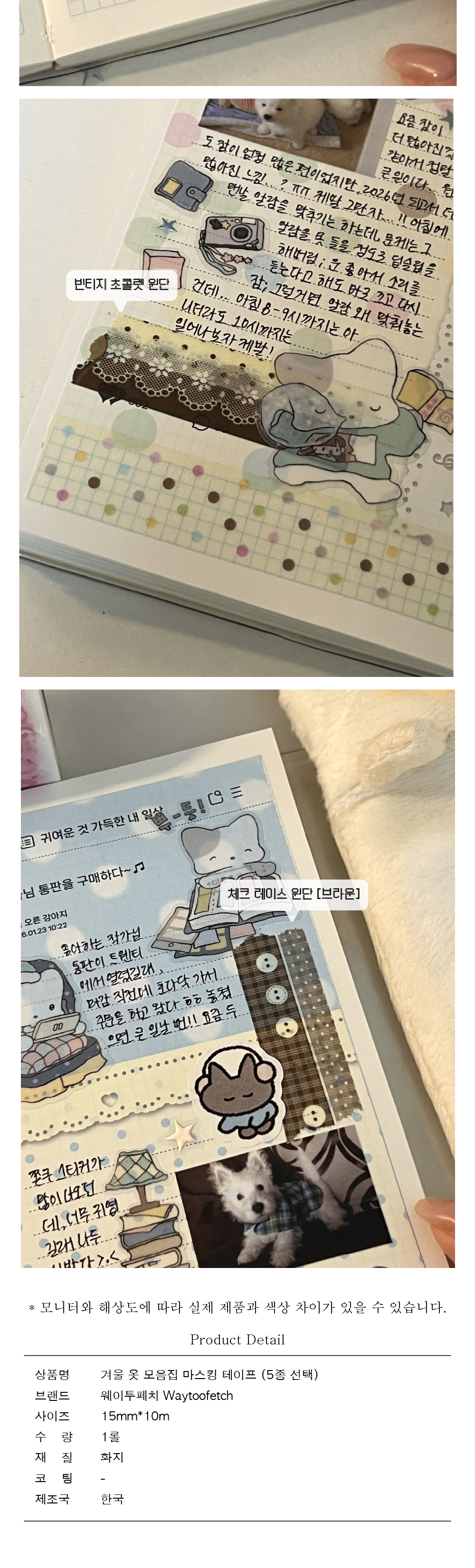 [웨이투페치] 겨울 옷 모음집 마스킹 테이프 (5종 선택)