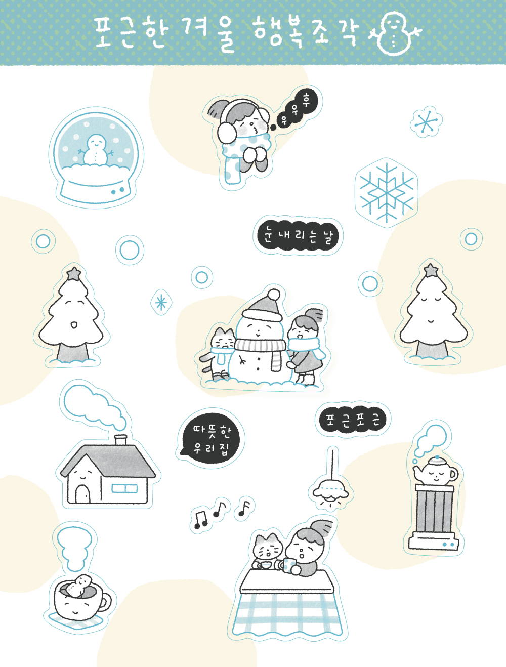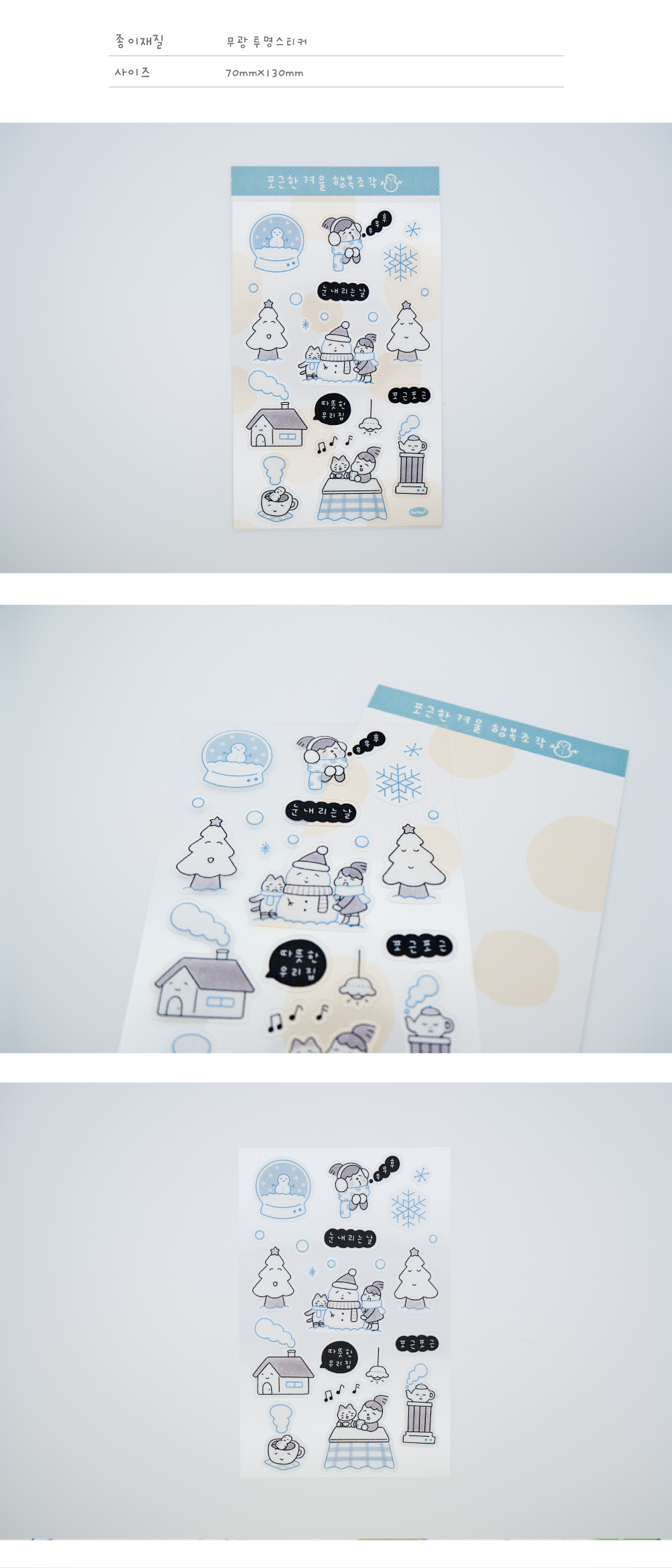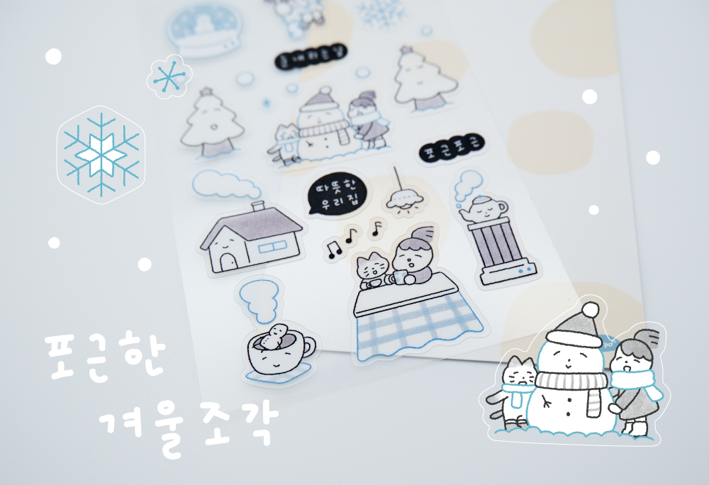 실내, 실외의 겨울에서만 느낄 수 있는 포근함을 담은 투명 씰스티커입니다.