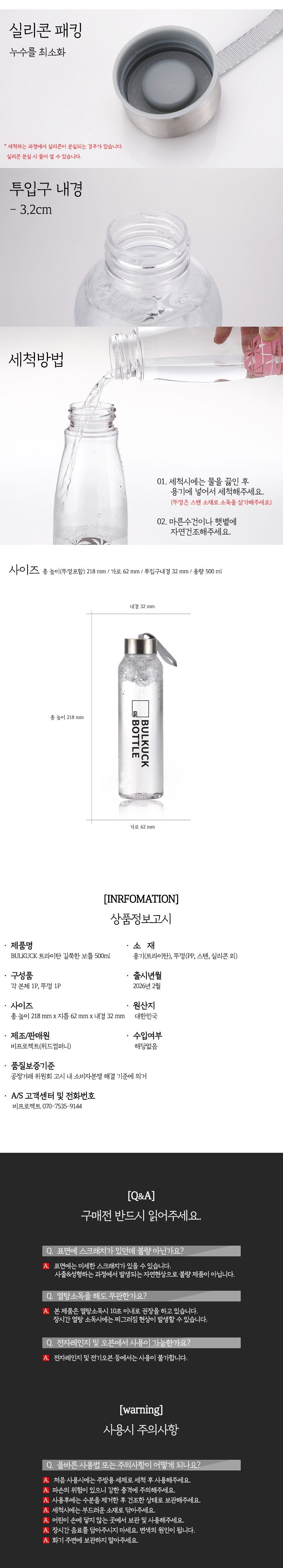 BULKUCK 트라이탄 길쭉한 보틀 500ml 2종 택1