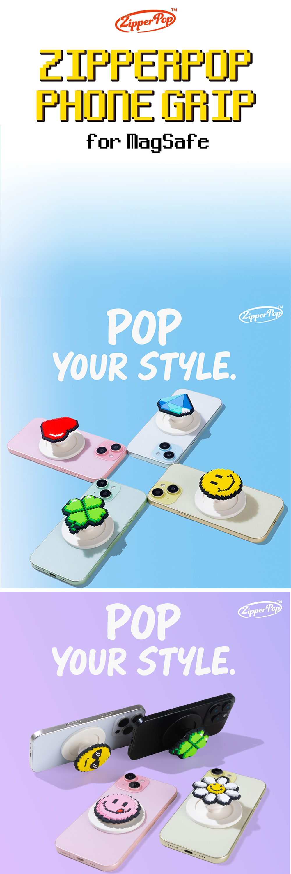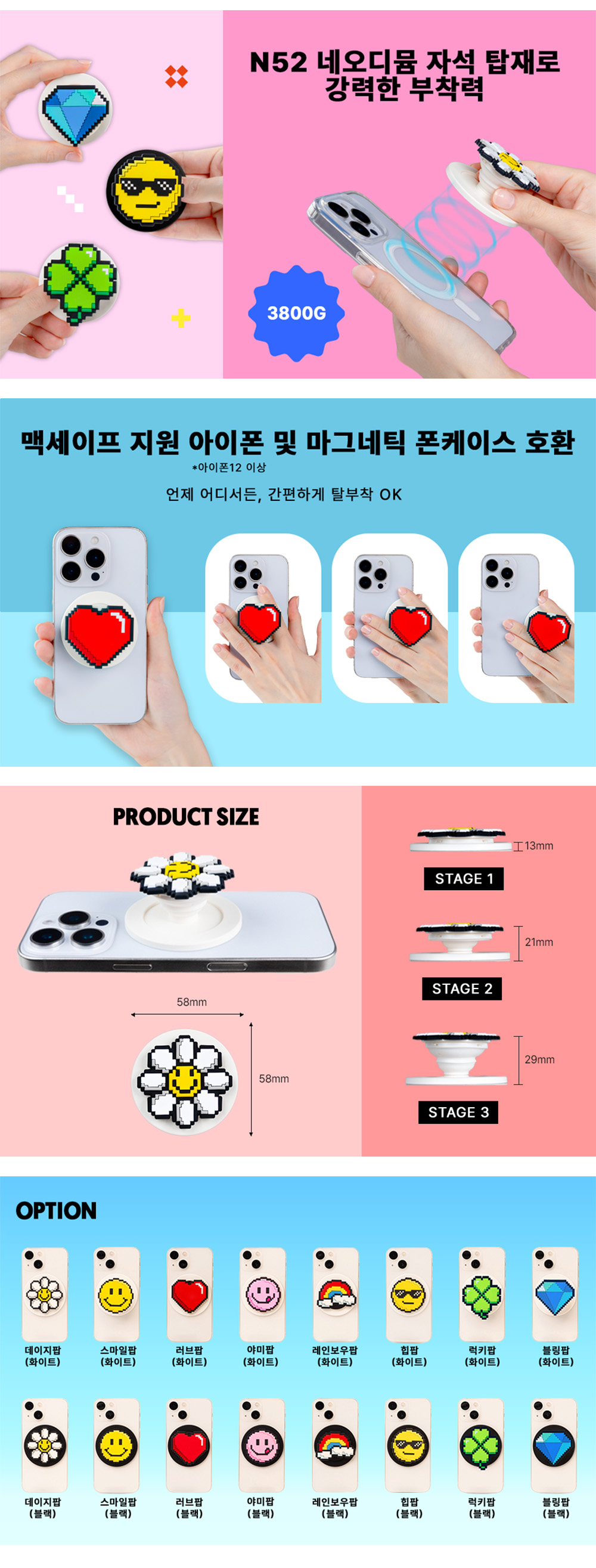 [지퍼팝] 3D 픽셀 도트 맥세이프 스마트톡 - 야미팝(블랙)