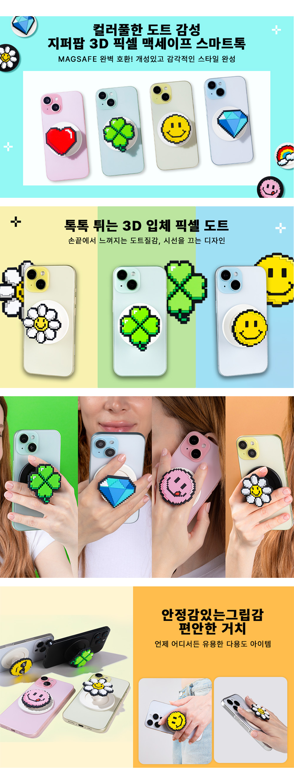 [지퍼팝] 3D 픽셀 도트 맥세이프 스마트톡 - 블링팝(화이트)