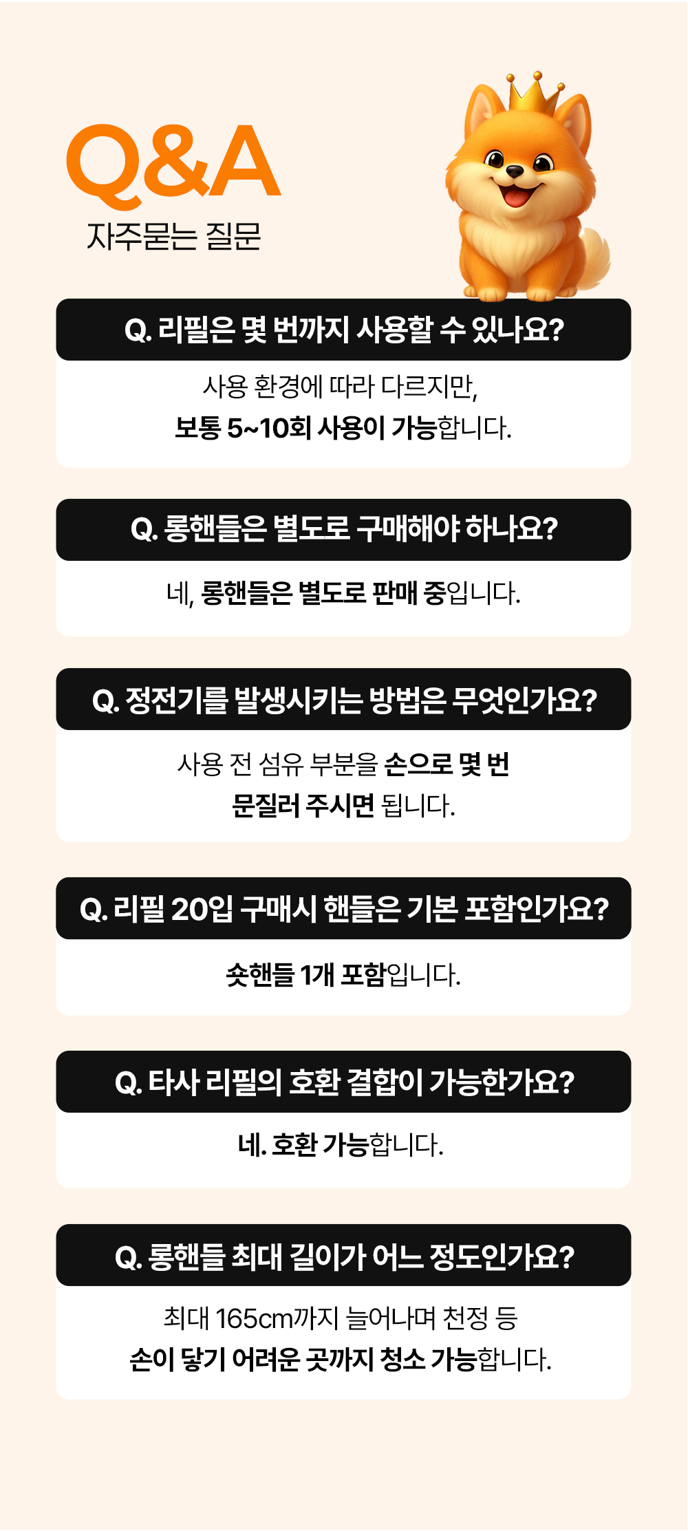 특장점: 길이조절이 가능한 더스킹 더스터 전용 롱핸들로 추가 상품으로 구매하실 수 있습니다.