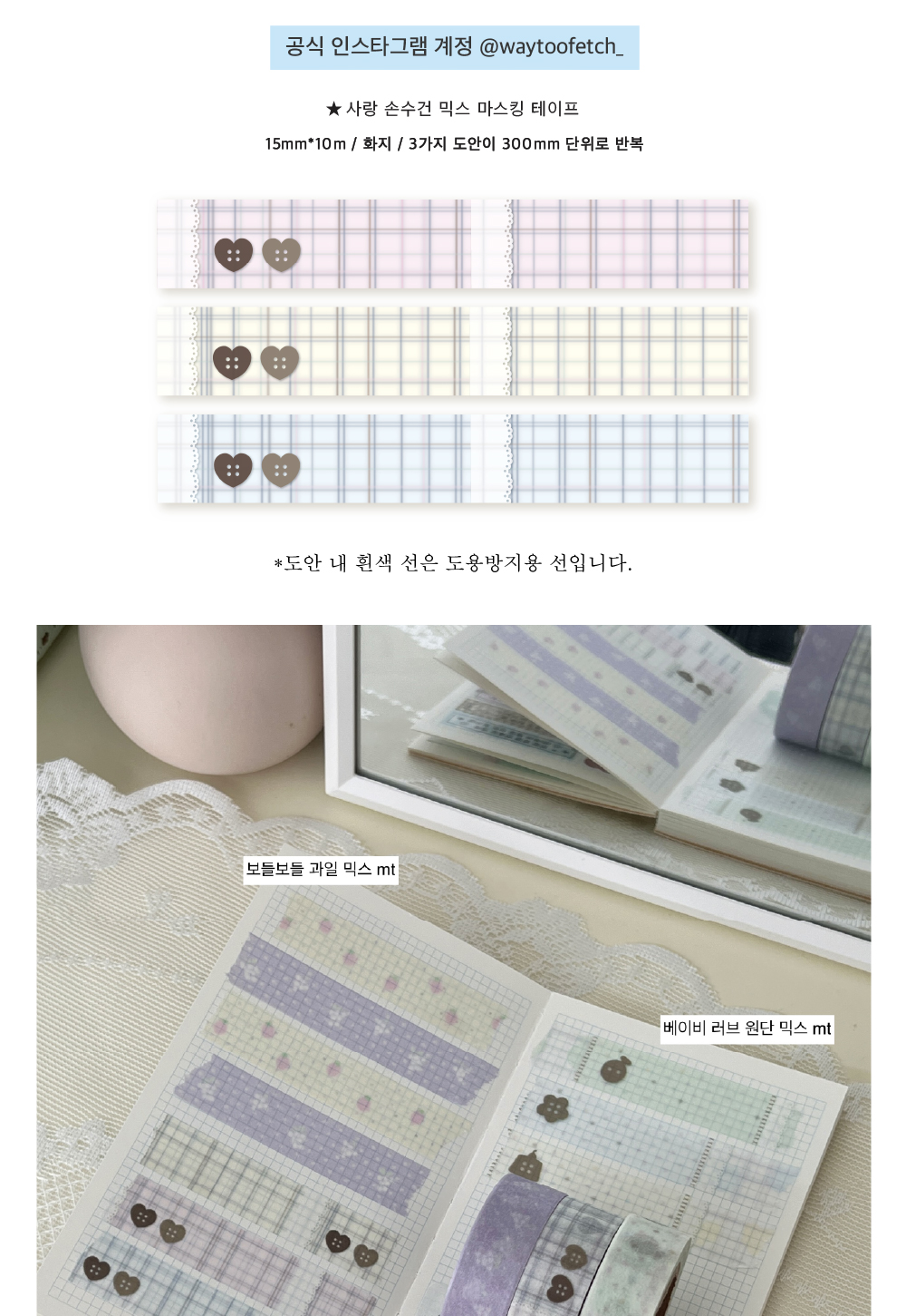 [웨이투페치] 사랑 손수건 믹스 마스킹 테이프