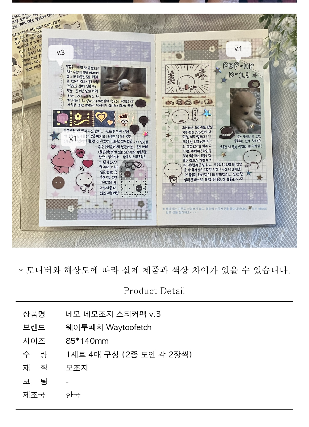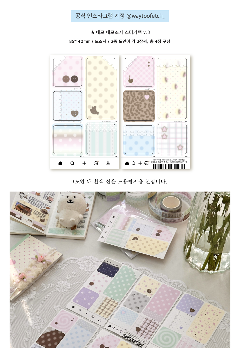 [웨이투페치] 네모 네모조지 v.3 스티커팩 (4장 구성)